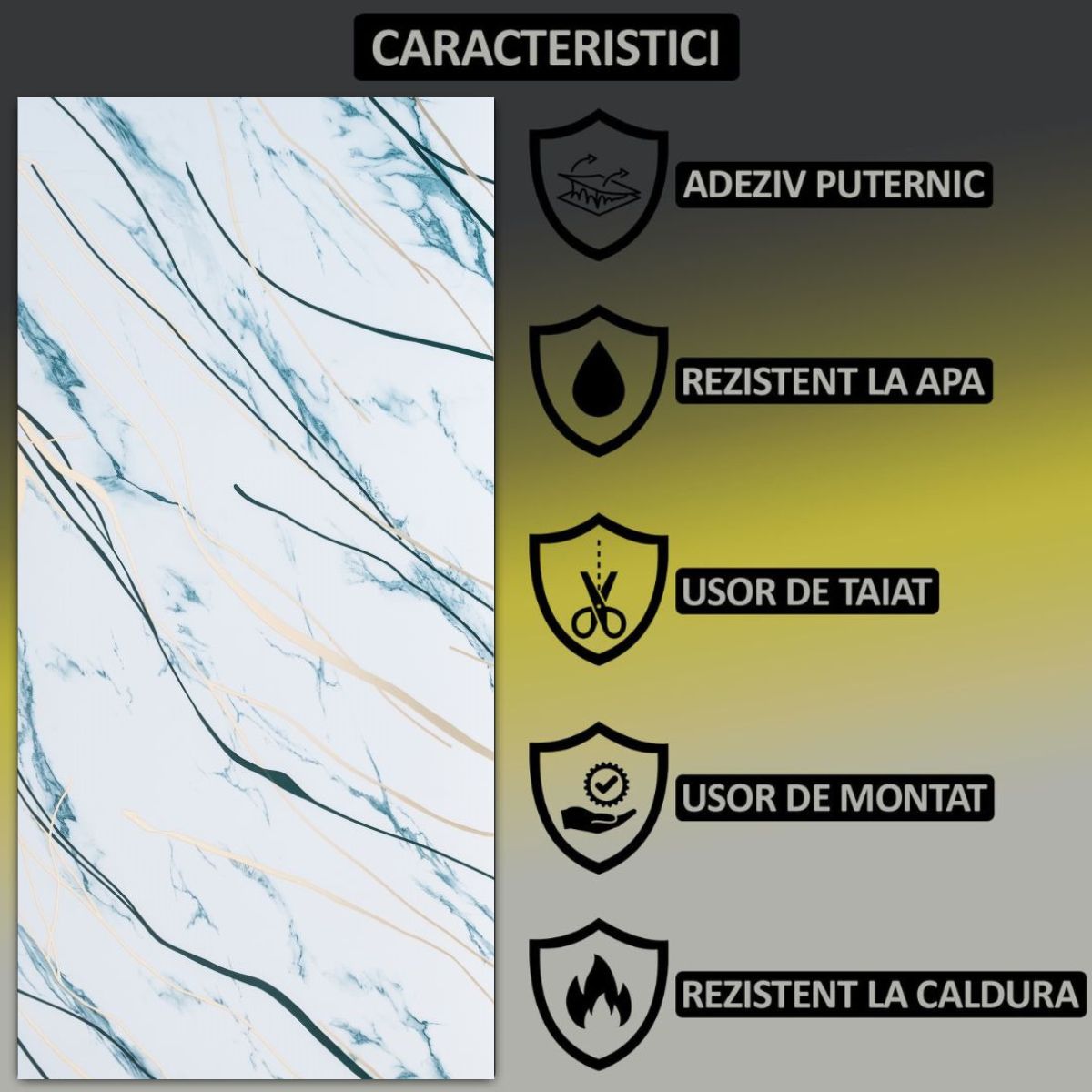 Panourile sunt fabricate din spuma EVA cu strat de aluminiu pentru durabilitate sporita si un finisaj lucios tip marmura.