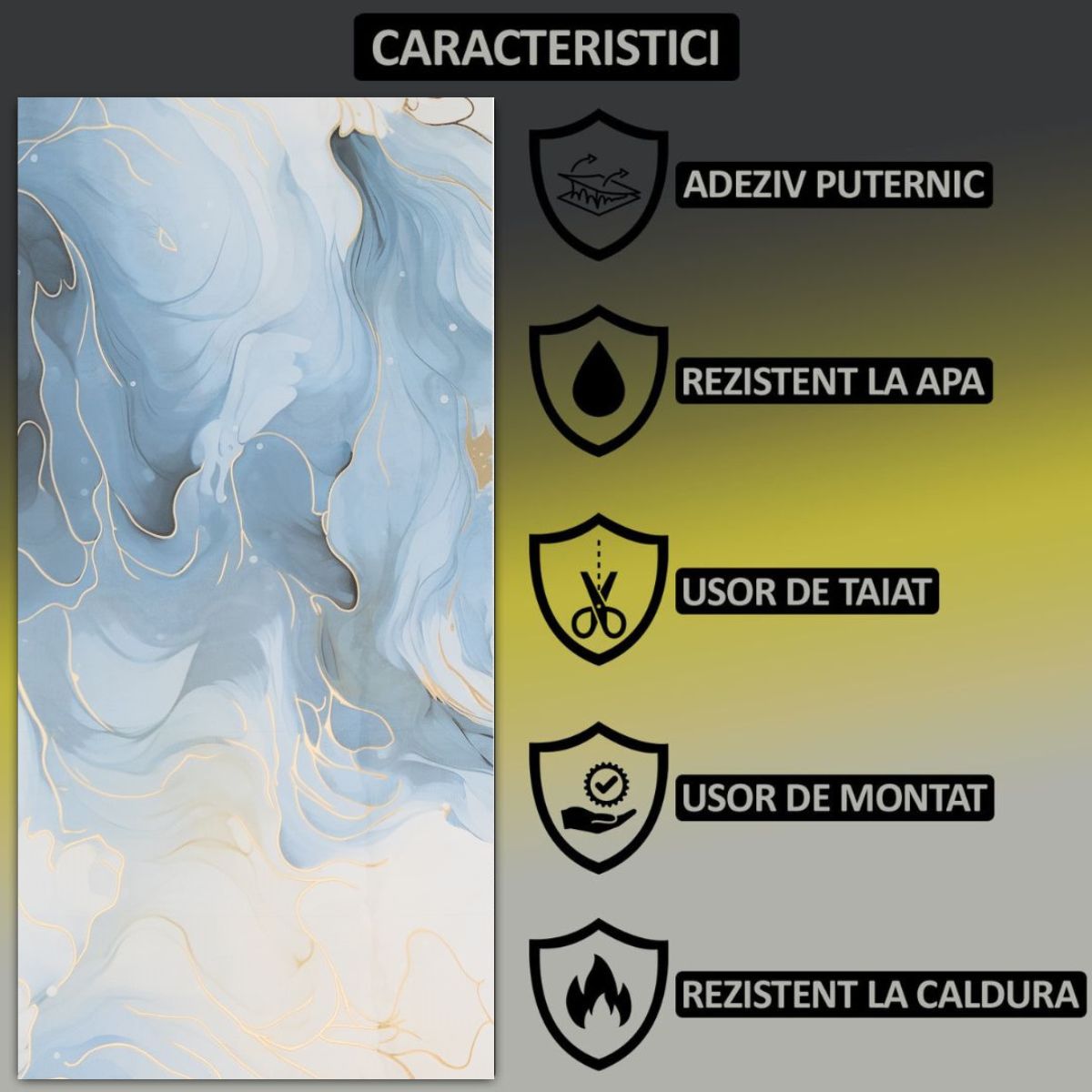 Panourile sunt fabricate din spuma EVA cu strat de aluminiu pentru durabilitate sporita si un finisaj lucios tip marmura.