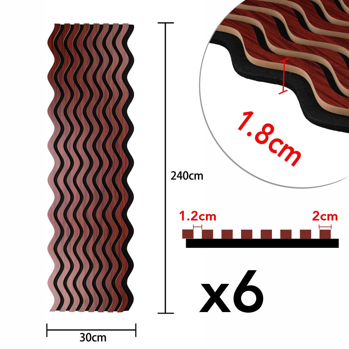Set 6 Panouri riflaj acustic decorativ, MDF si pasla, Naimeed D6244, 240x30x1.8cm, Visin