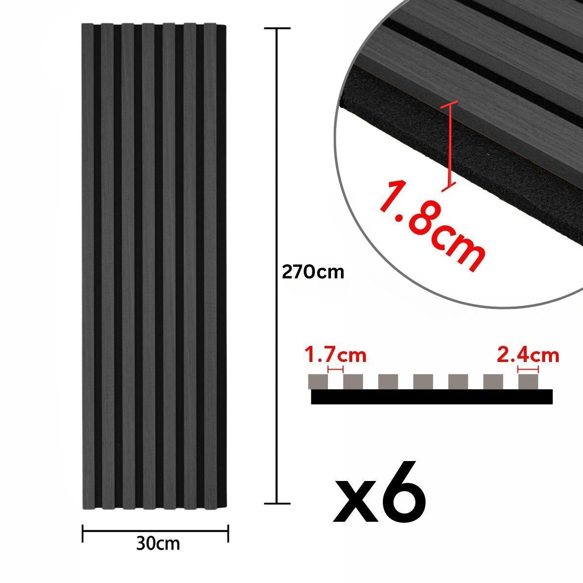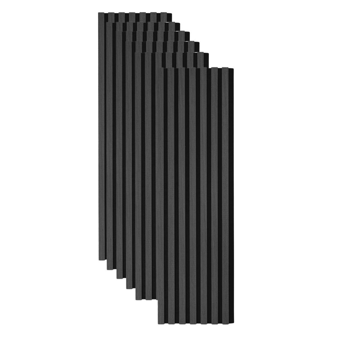 Set 6 Panouri riflaj acustic decorativ, MDF si pasla, Naimeed D7103, 270x30x1.8cm, Gri inchis