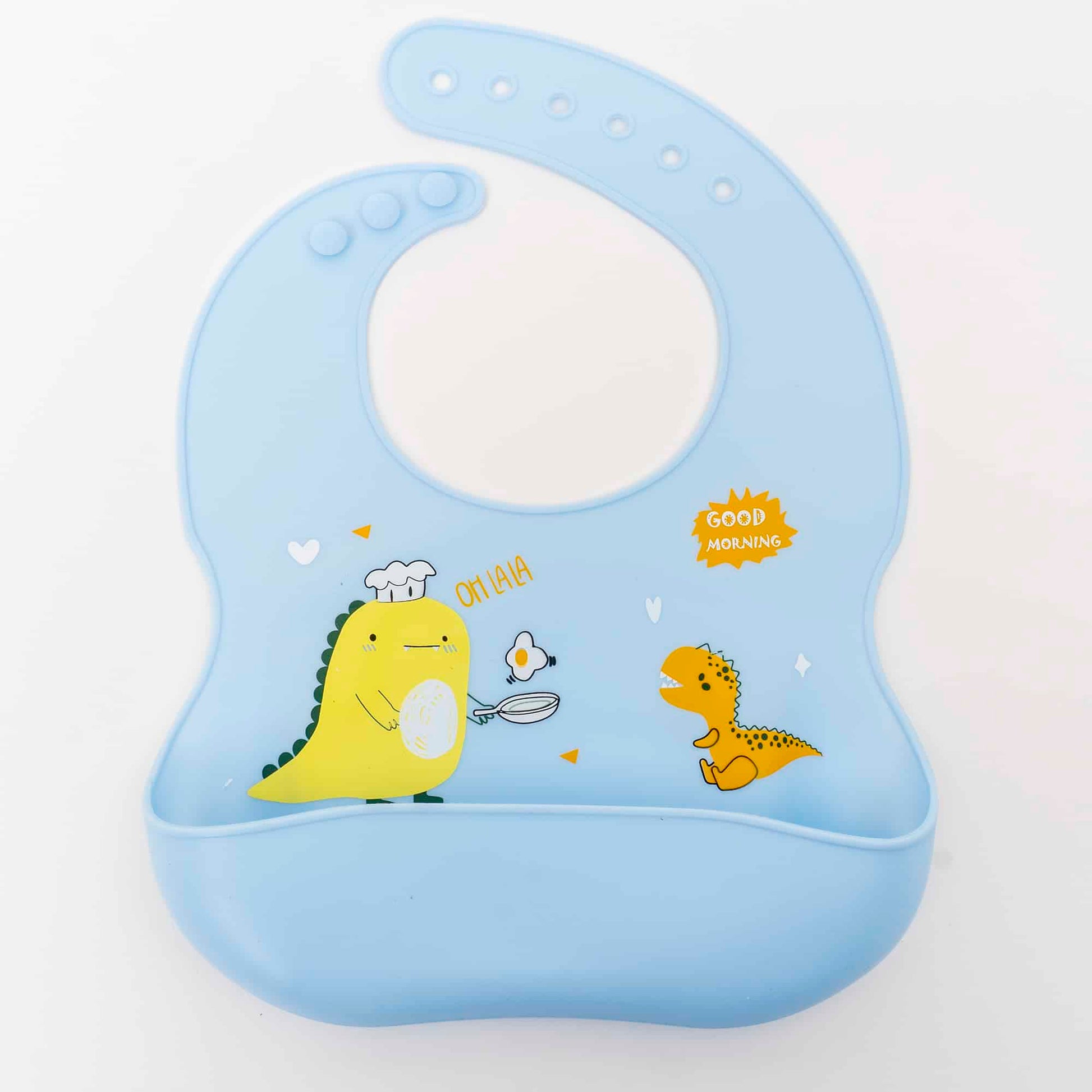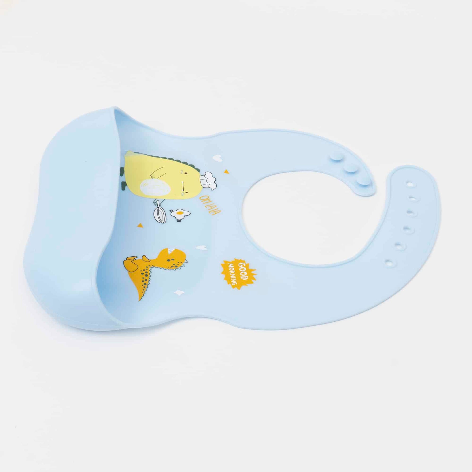 Baveta reglabila, impermeabila, va mentine copilul curat si uscat pe parcursul acestei aventuri culinare, datorita buzunarului spatios pentru colectarea alimentelor cazute din gurita celui mic. Prinderea rapida si ajustabila pe 6 niveluri permite folosirea bavetei timp indelungat, in ritmul cresterii copilului.