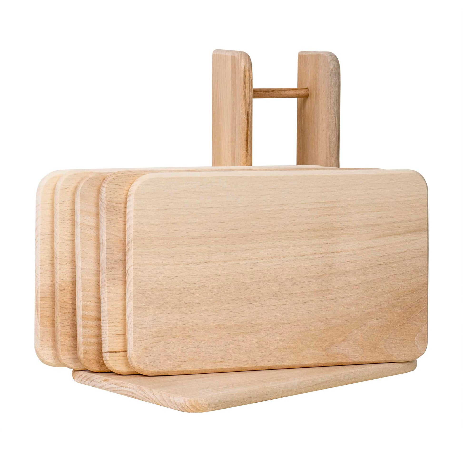Set 6 tocatoare din lemn de fag, plus suport, dreptunghiular / EXT 6085