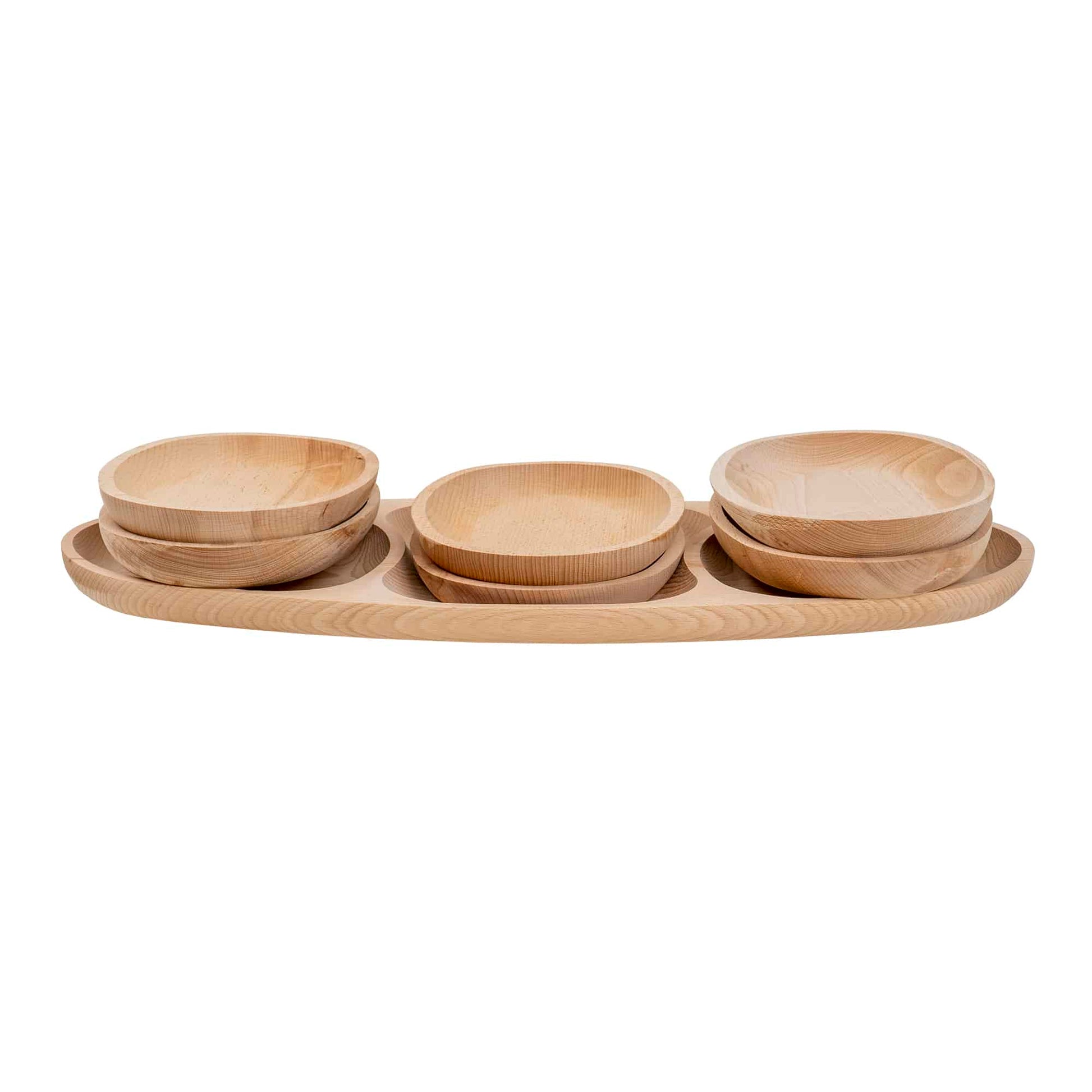 Set 7 platouri ovale din lemn de fag, compartimentat, 60x28x2.5cm / EXT 6172