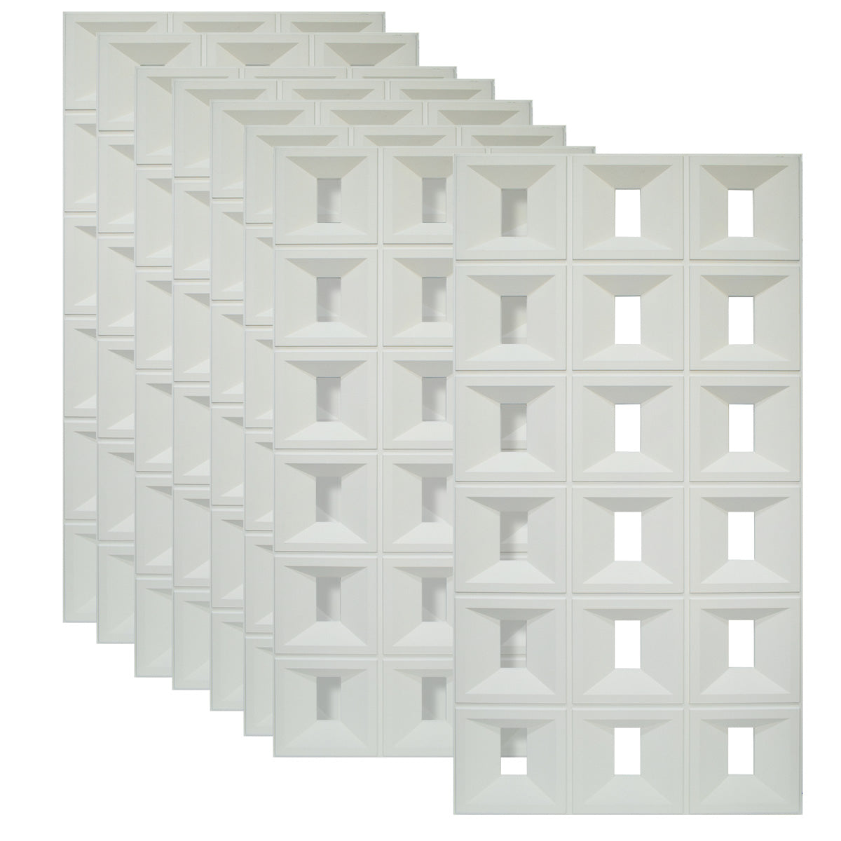 Set 8 x Panou Decorativ 3D, Naimeed D5767, ultrausor, design elegant, PU, 120 x 60 x 3 cm, Alb