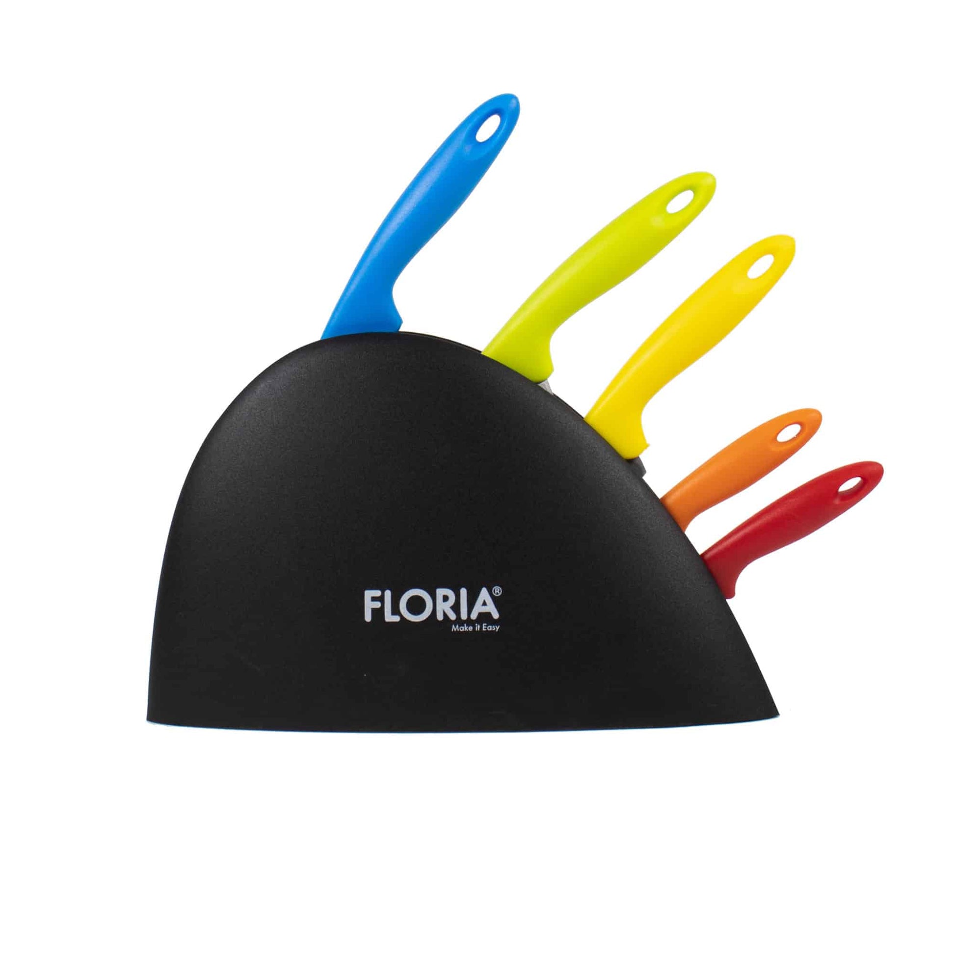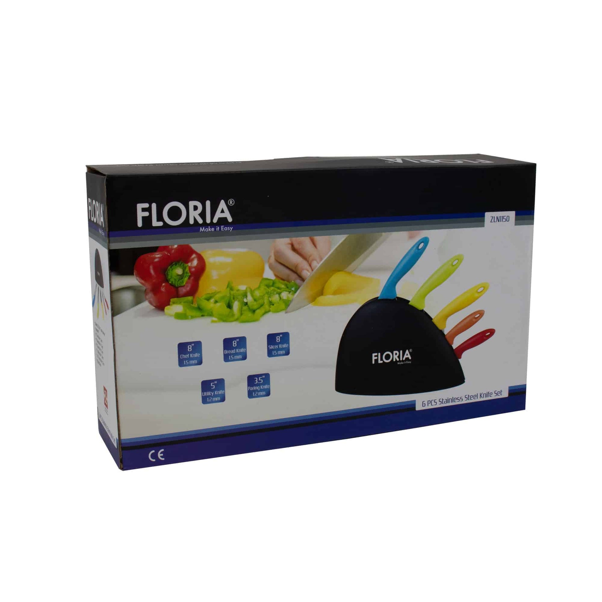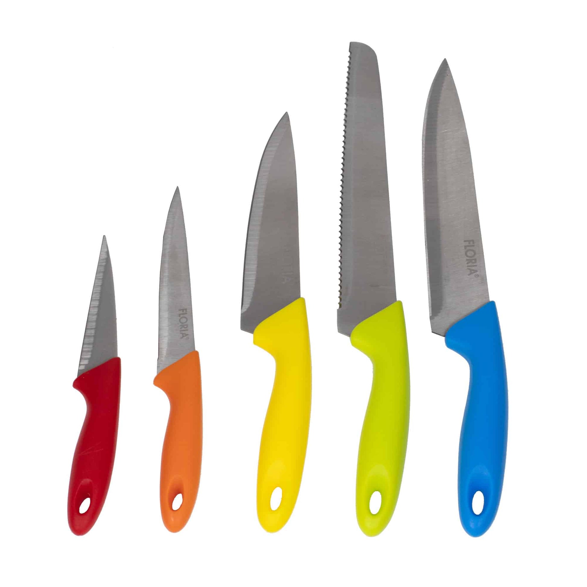 Set cutite 6 piese cu suport contine: cutitul bucatarie lama de 20cm, cutit de paine lama de 20cm, cutit de feliat lama de 20cm, cutit universal lama de 13cm, cutit pentru curatat lama de 9cm, suport pentru cutite din plastic. Lama cutitelor este din inox iar manerele din plastic colorate.De asemenea este si un bun cadou pentru cei dragi.