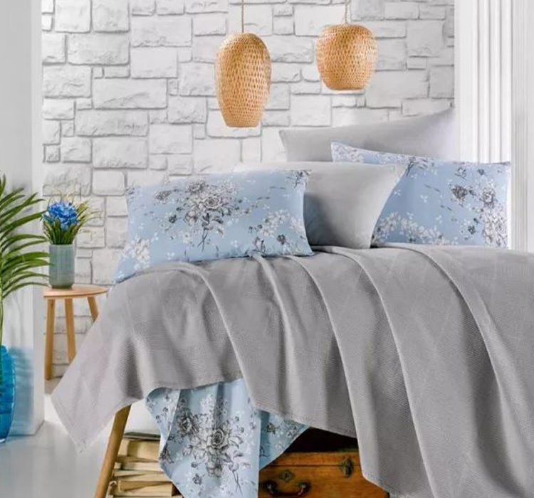 Set lenjerie pat dublu, latime 180cm, Naimeed D4913, Gri