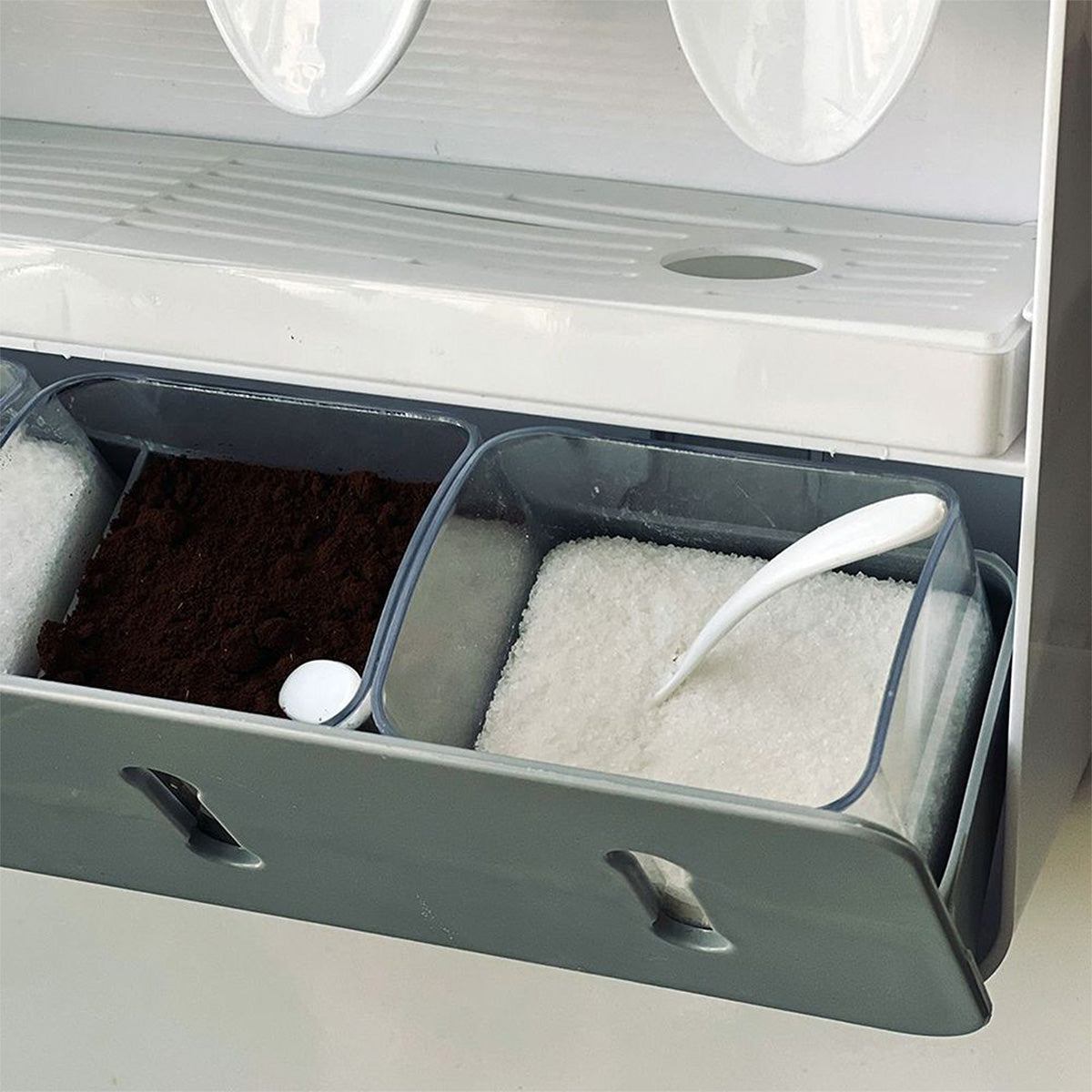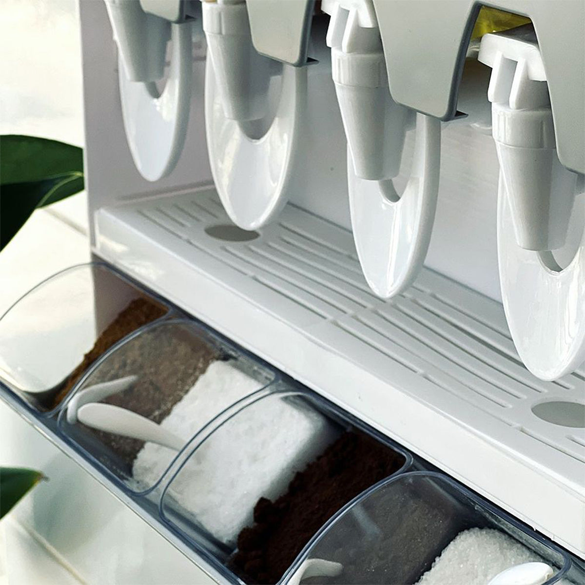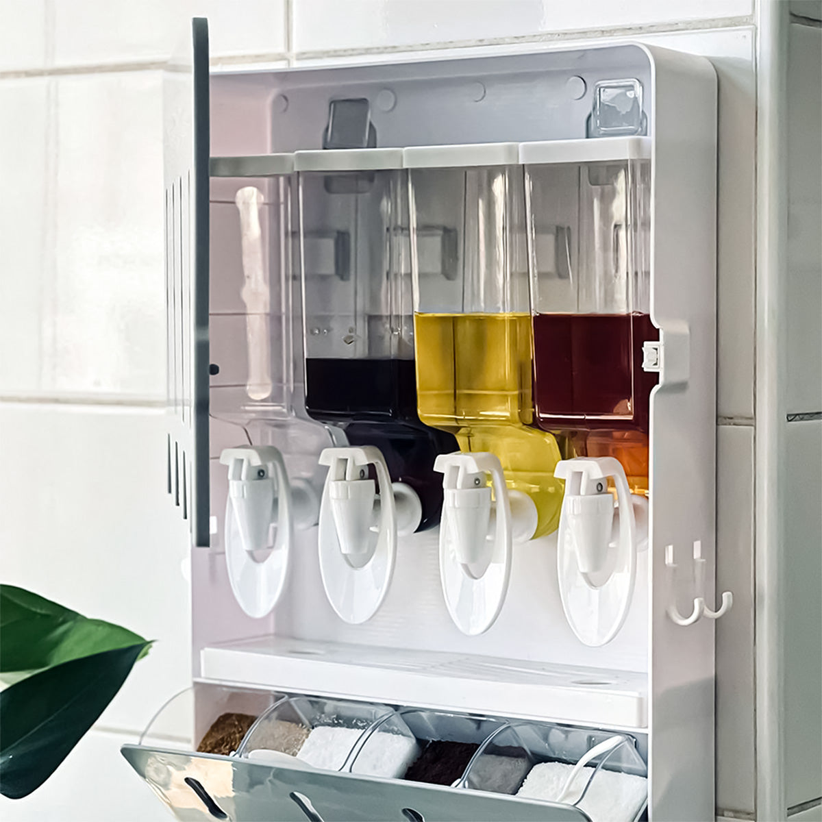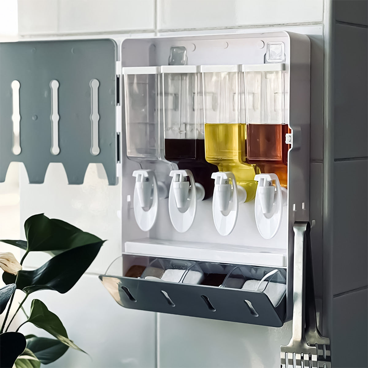 Suport condimente, Naimeed D5117, 4 dozatoare pentru sosuri/condimente, montare fara gaurire, Gri