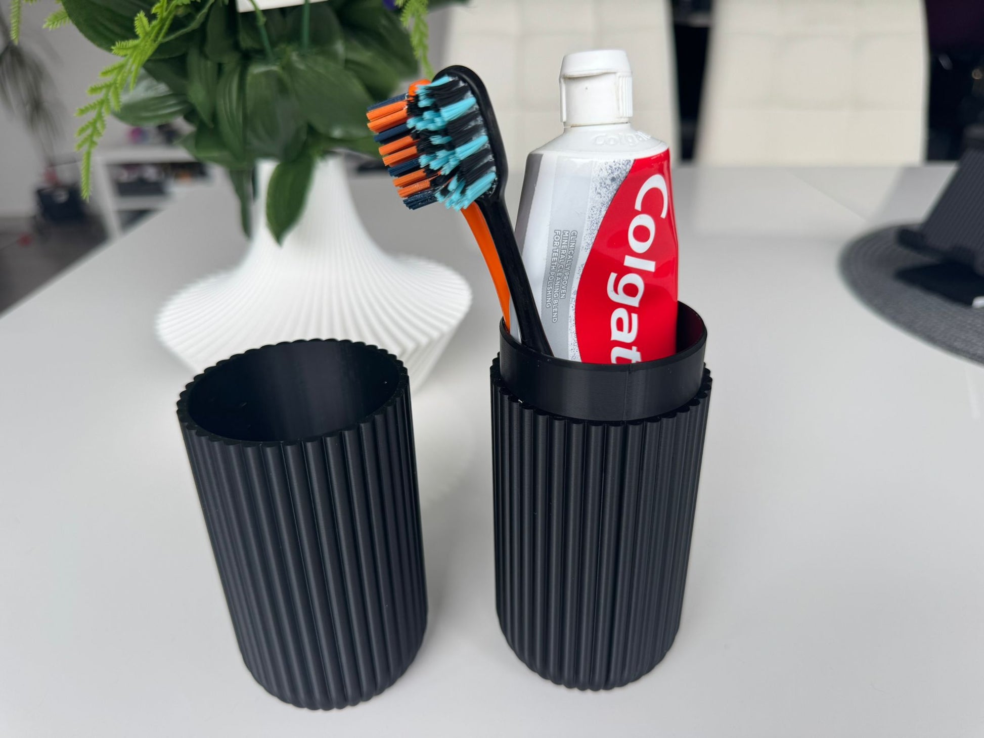 Organizeaza-ti rapid si igienic periuta si pasta de dinti atunci cand calatoresti, cu acest suport compact si versatil, conceput special pentru voiaj. Realizat prin printare 3D din PLA biodegradabil, suportul Travel functioneaza atat ca recipient de depozitare, cat si ca doua pahare individuale la nevoie.