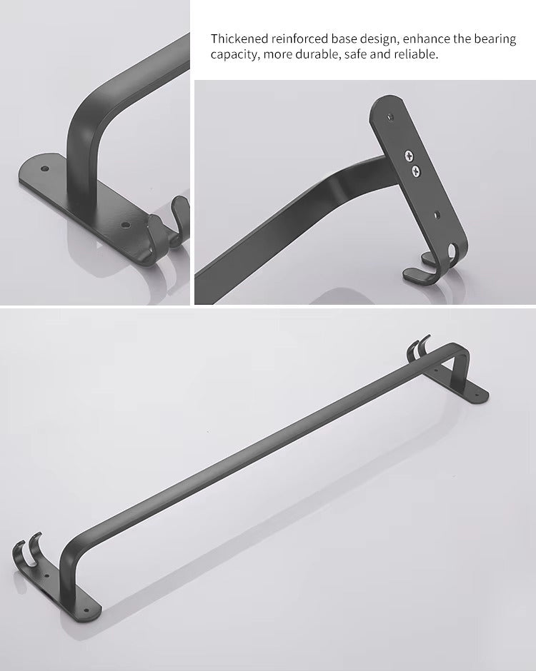 Cu un design minimalist si functional, suportul ofera atat o bara pentru prosoape, cat si carlige duble integrate,