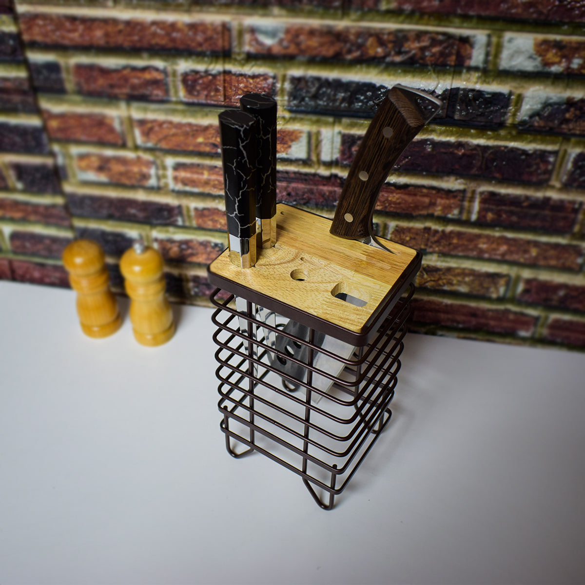 Suport tacamuri, din metal si bambus, Naimeed D2713, Maro