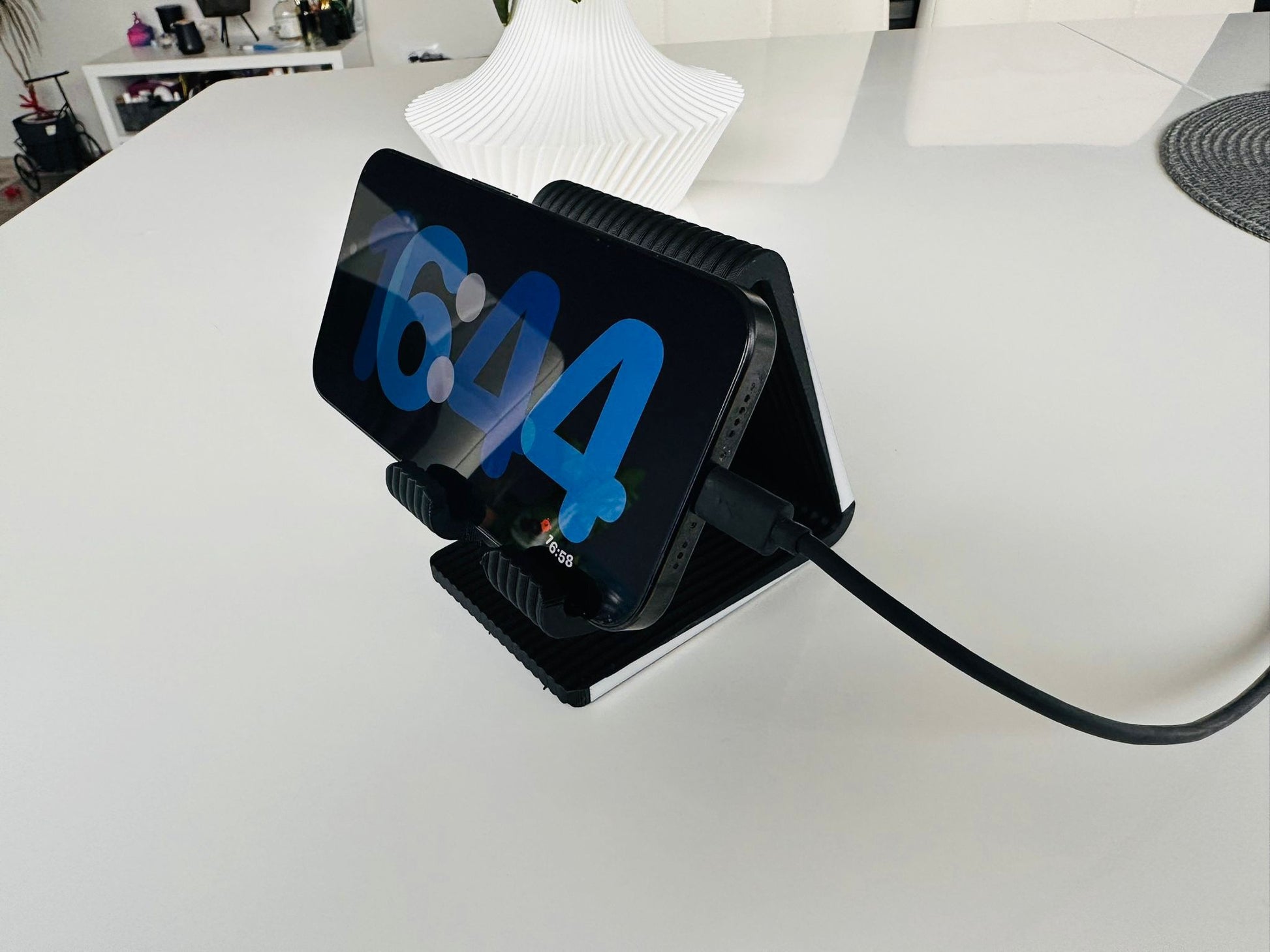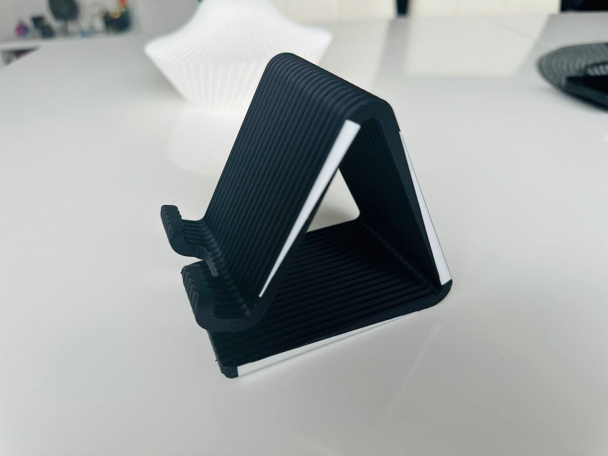 Suport telefon printat 3D din PLA, ergonomic si modernAcest suport pentru telefon realizat prin tehnologia avansata de imprimare 3D combina designul minimalist, ergonomic si functionalitatea practica. Fabricat din PLA (acid polilactic), un material ecologic si biodegradabil, suportul ofera rezistenta si durabilitate in utilizarea zilnica.