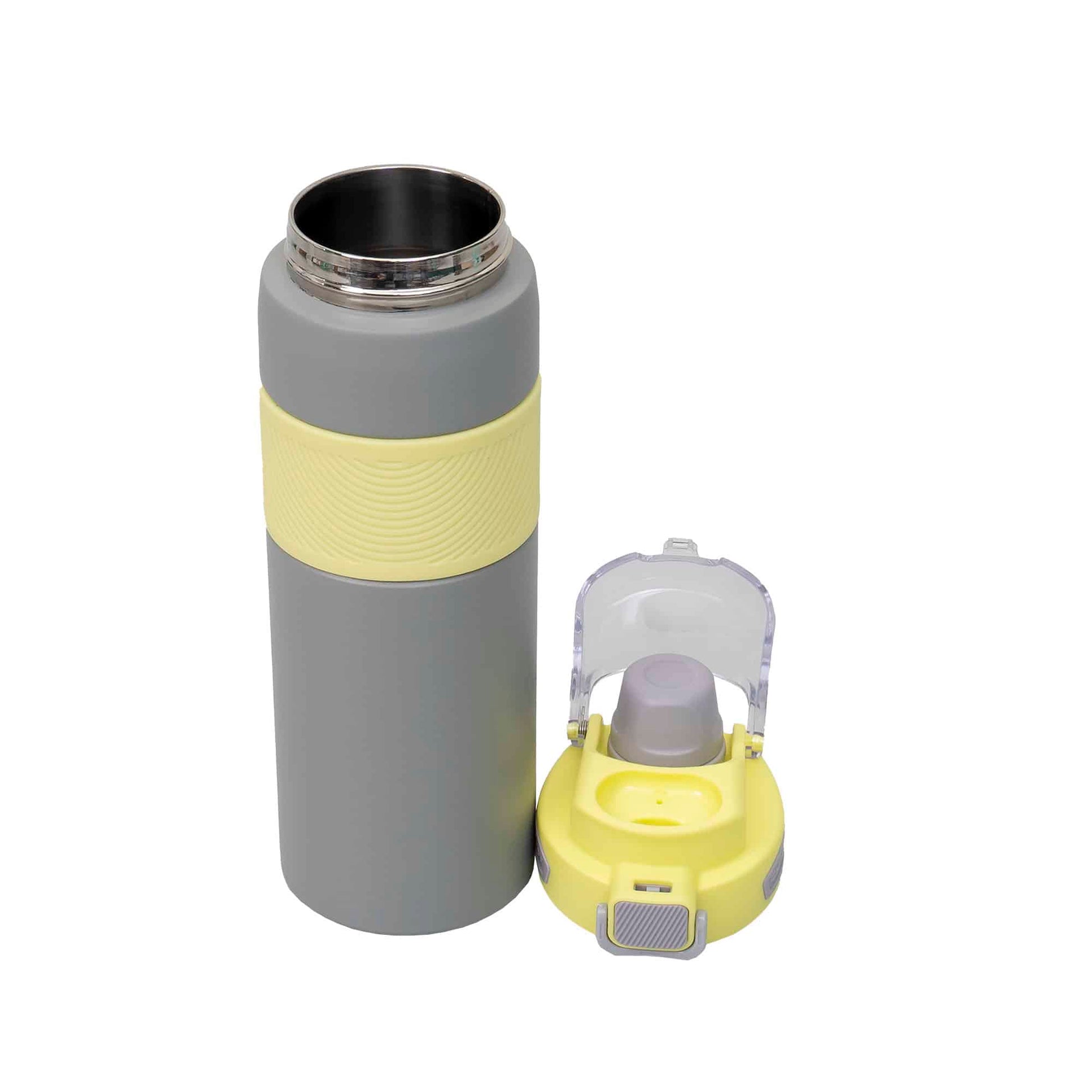 Termos 2 in 1, interior inox, capacitate 800ml, model cu pai, galben.