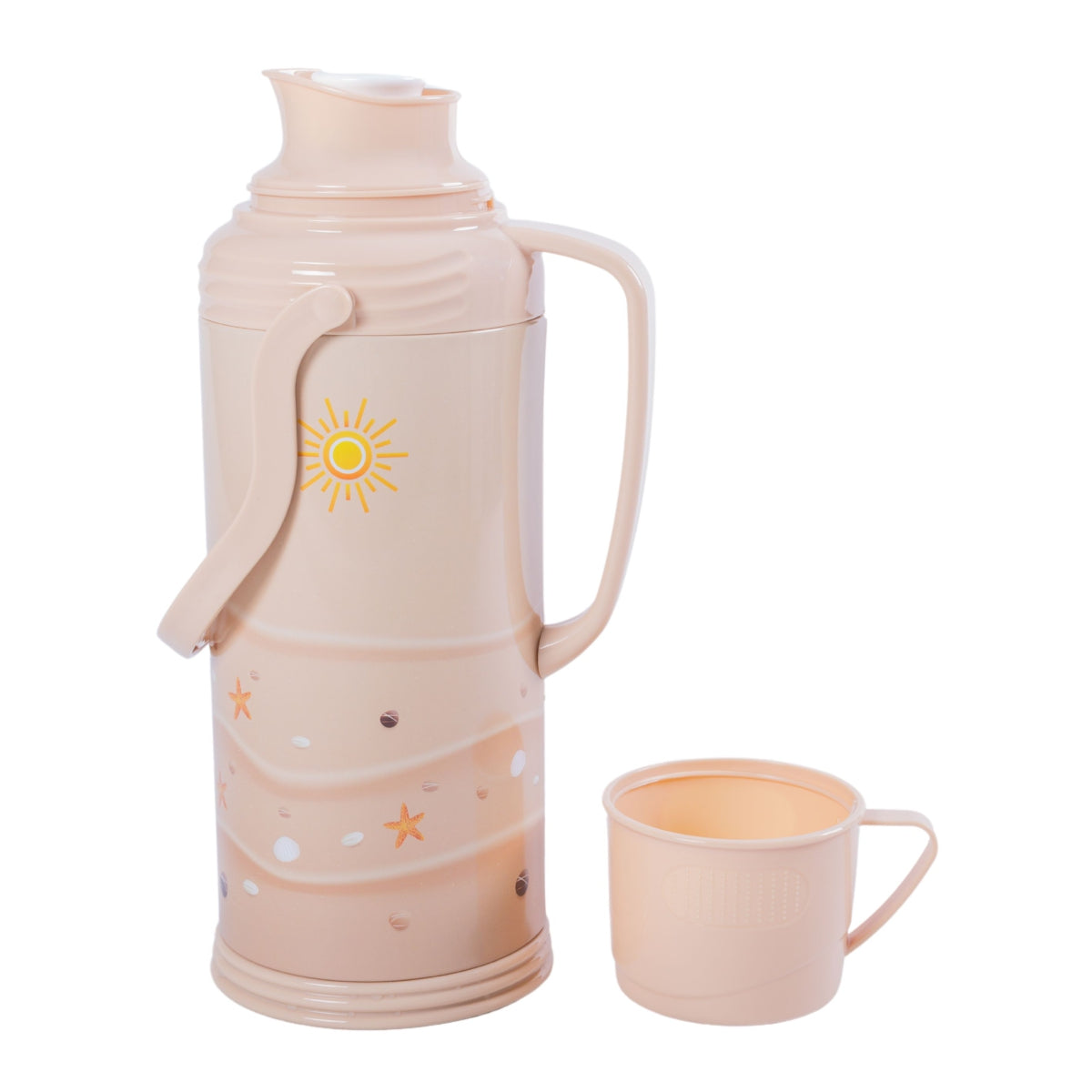 Termos, Naimeed D6420, pentru bauturi reci sau calde, Sticla si ABS, 1.2L, Crem, 120x340x170mm