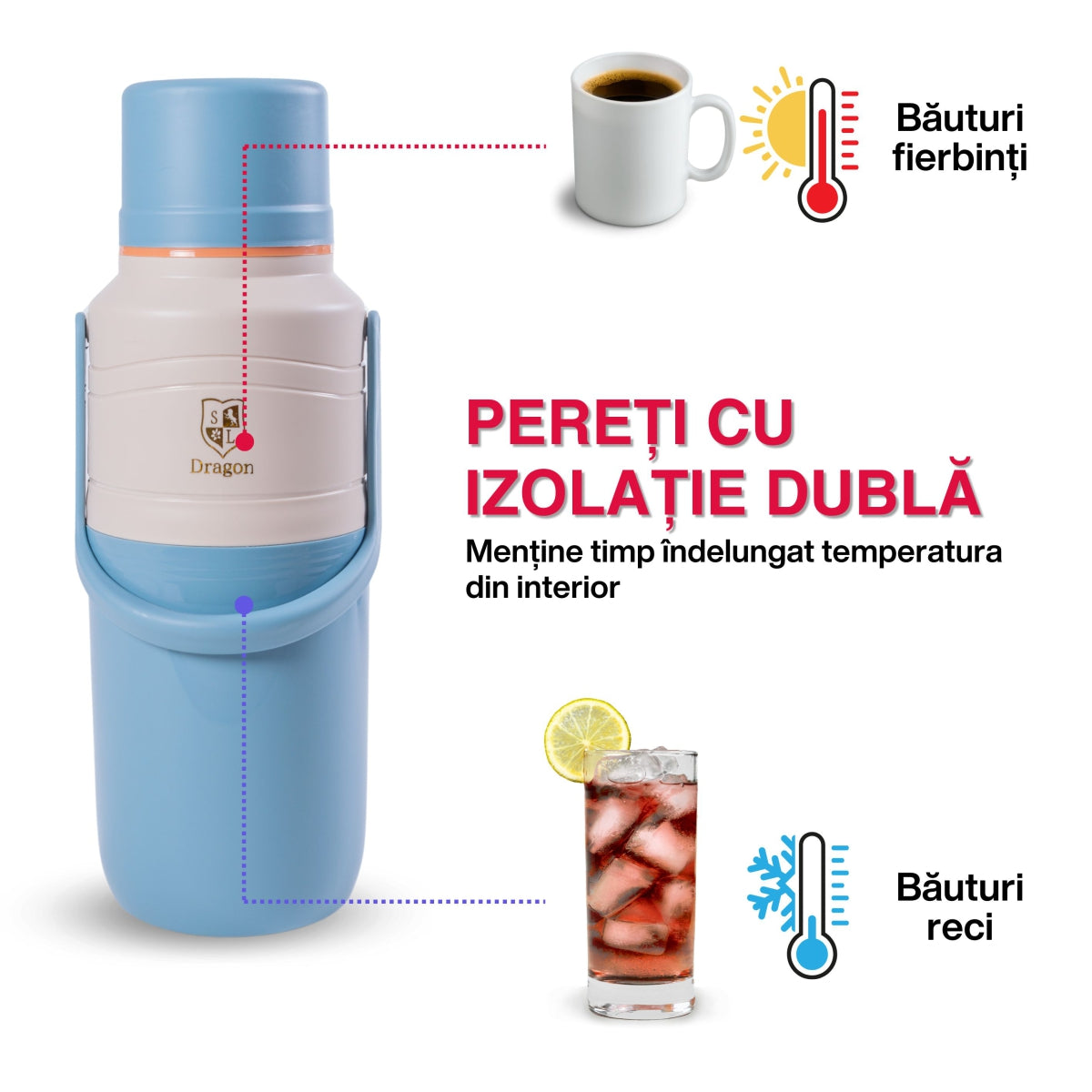 Peretele dublu vidat ajuta la pastrarea bauturilor reci sau calde.