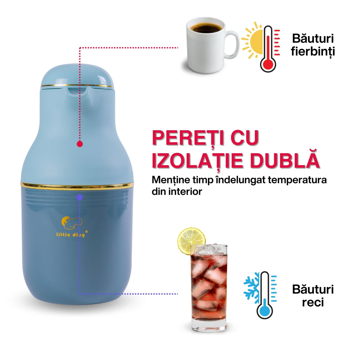 Termos, Naimeed D6427, pentru bauturi reci sau calde, Sticla si ABS, 1L, Albastru, 130x280x160mm