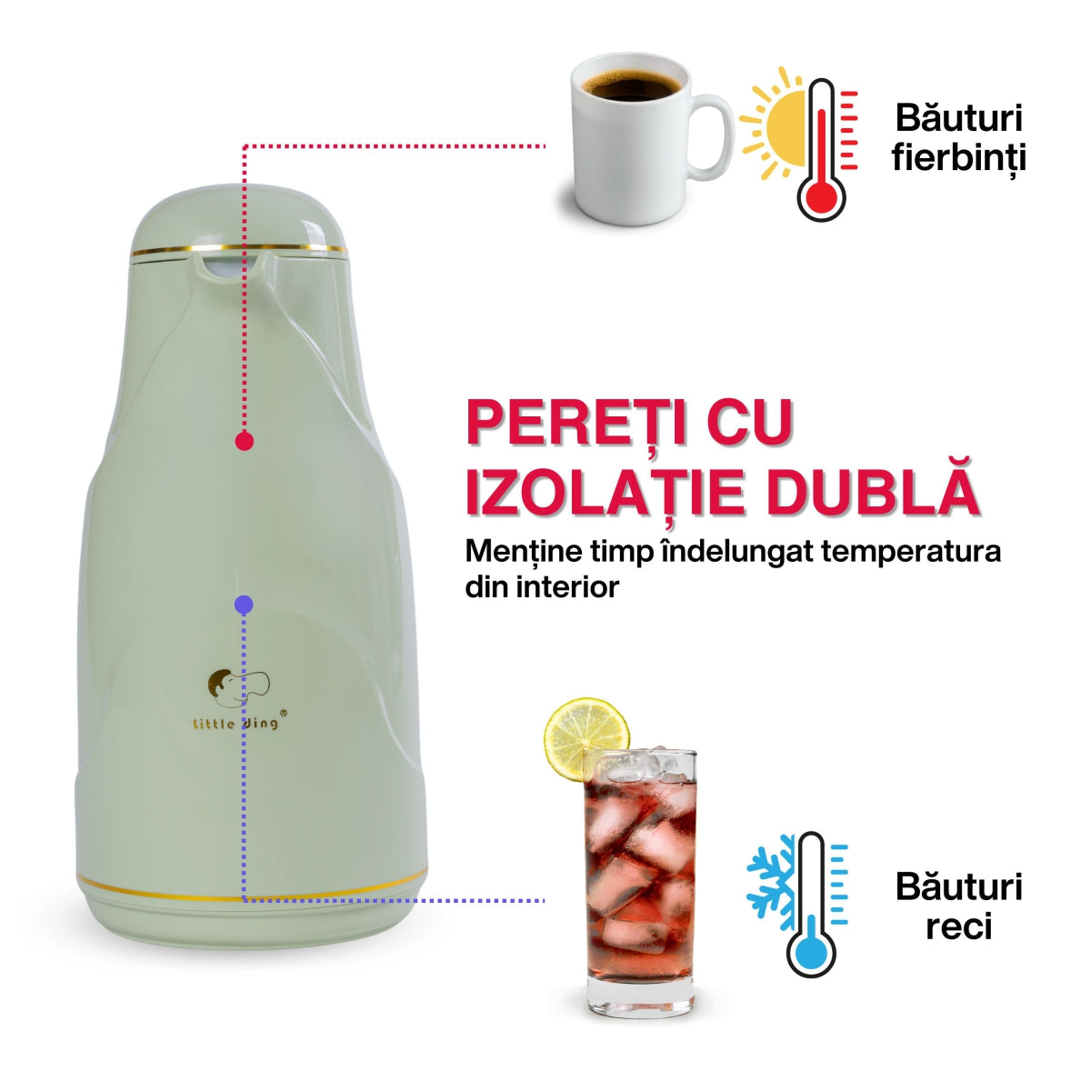 Peretele dublu vidat ajuta la pastrarea bauturilor reci sau calde.