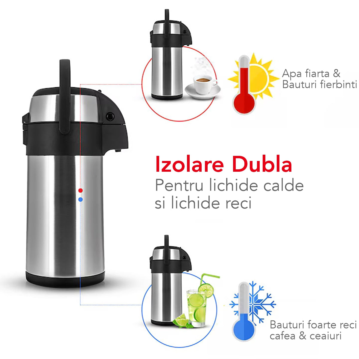 Acest termos cu pompita este ideal pentru a pastra bauturile tale preferate la temperatura perfecta pentru perioade indelungate.