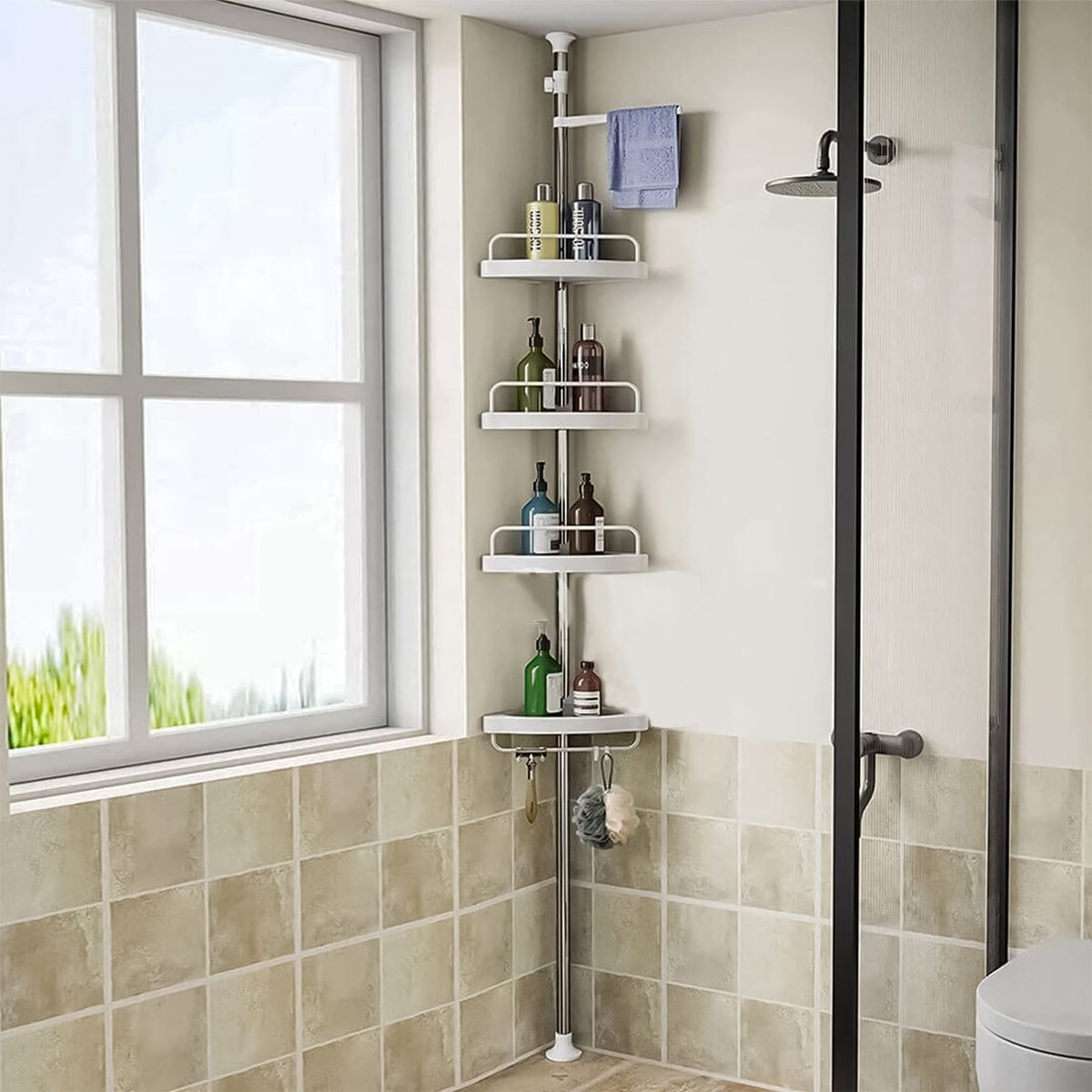 Conceput special pentru a fi amplasat in orice colt al camerei, acest raft va maximiza spatiul disponibil in baie.