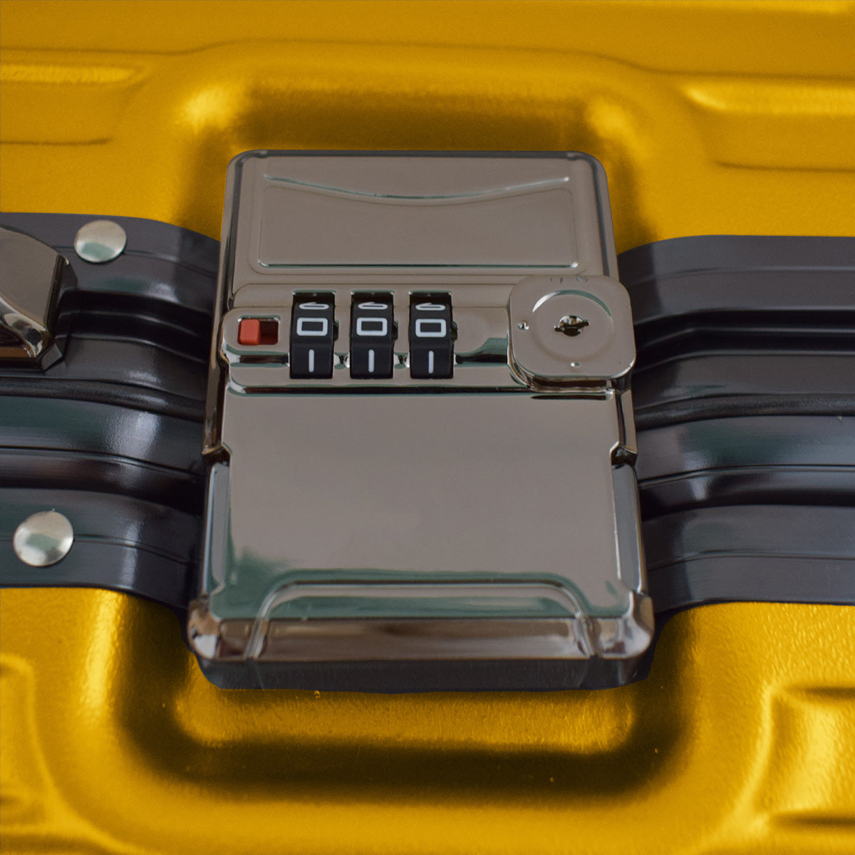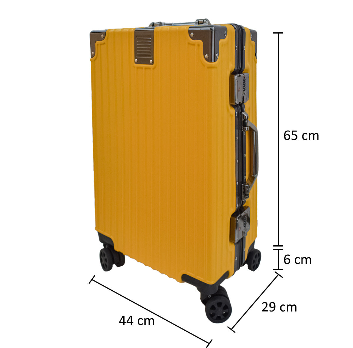 Troler, bagaj de cala, Naimeed D5393L, Premium Voyage, 4 roti duble 360 grade, ABS, inchidere cifru, Galben, 44x29x71cm