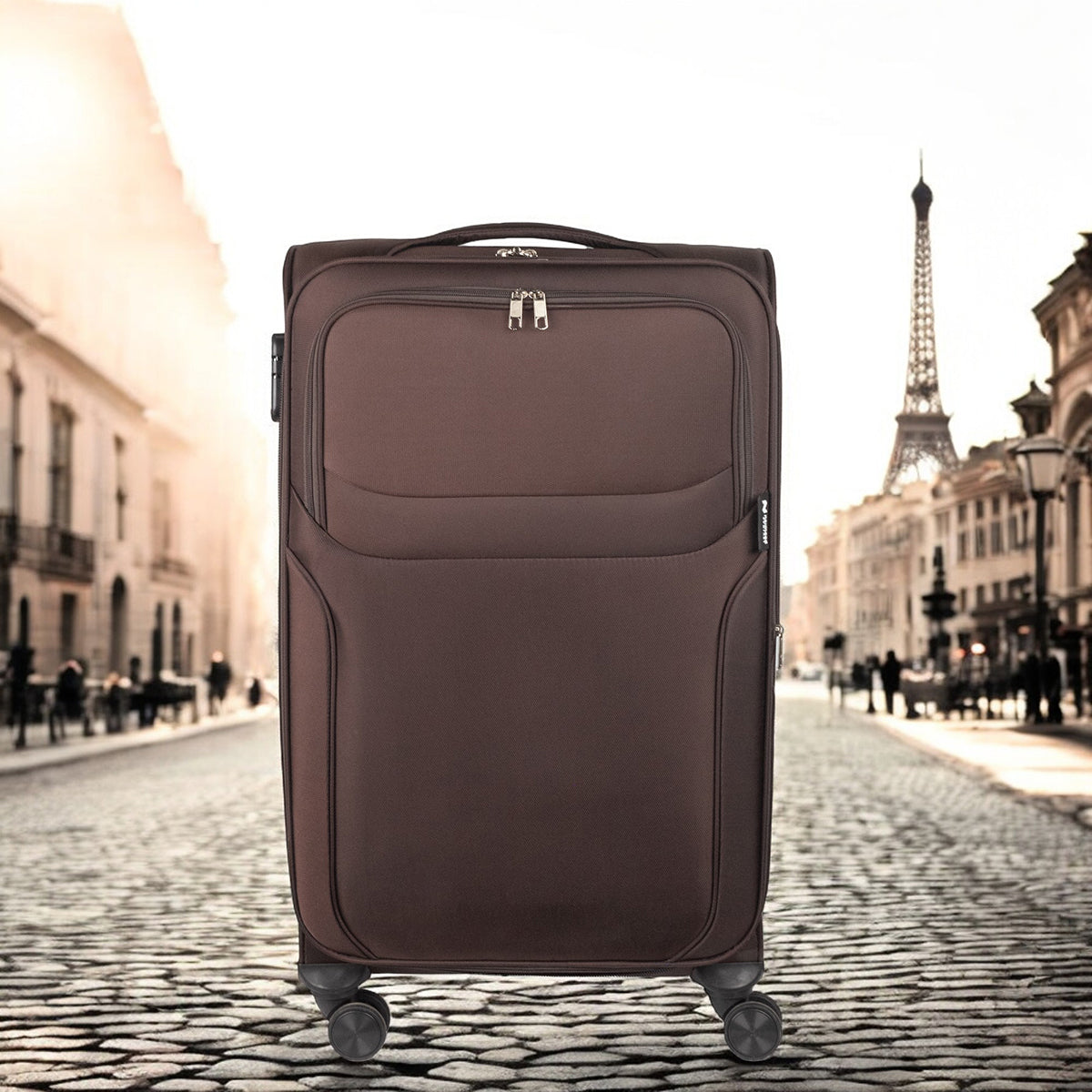 Troler voiaj Mare, Naimeed D5973, 4 roti duble 360 grade, material textil, inchidere cifru, Maro, 46x31x73cm