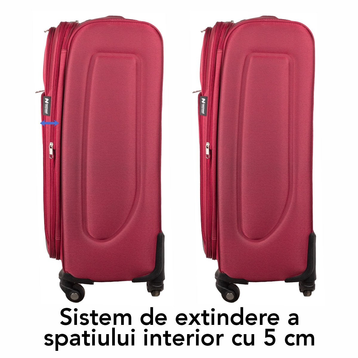 Troler voiaj Mare, Naimeed D5980, 4 roti, material textil, inchidere cifru, Rosu, 45x30x73cm