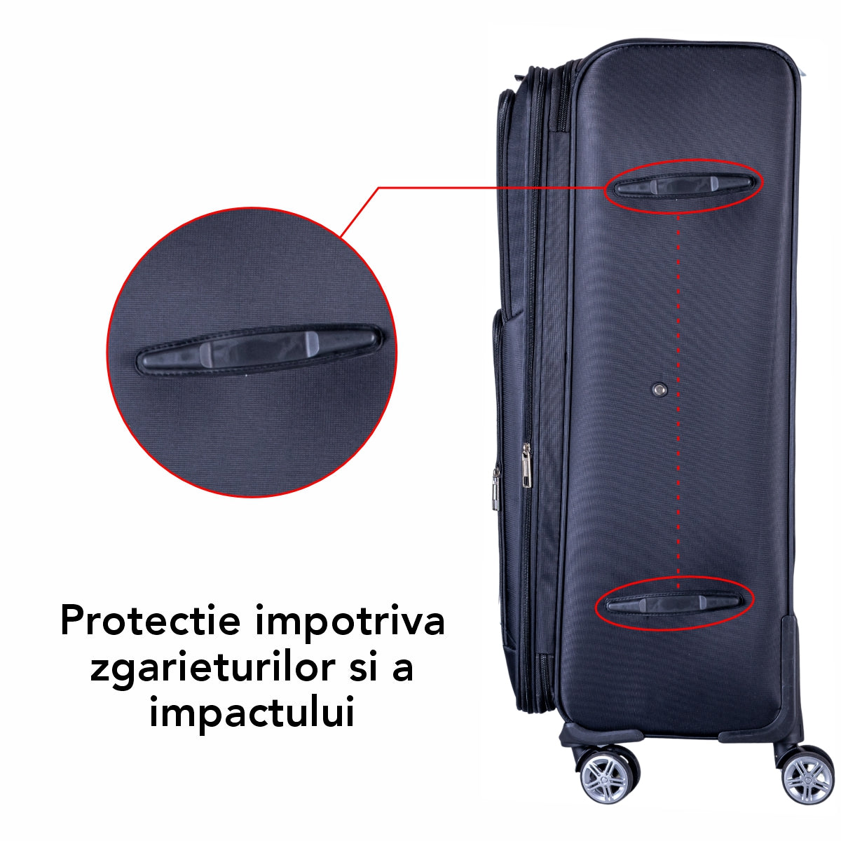Troler voiaj Mare, Naimeed D5998, 4 roti duble 360 grade, material textil, inchidere cifru, Negru, 46x27x78cm