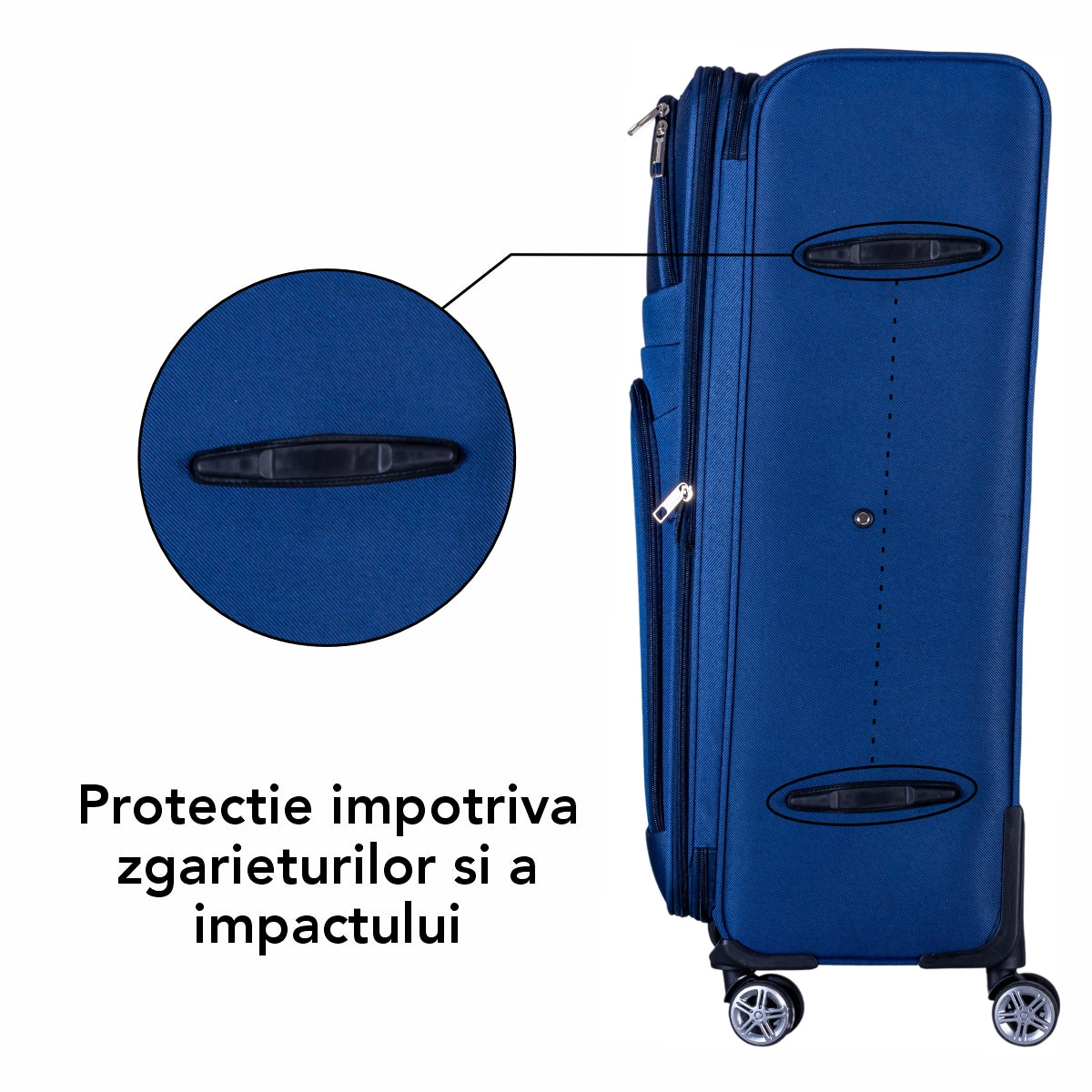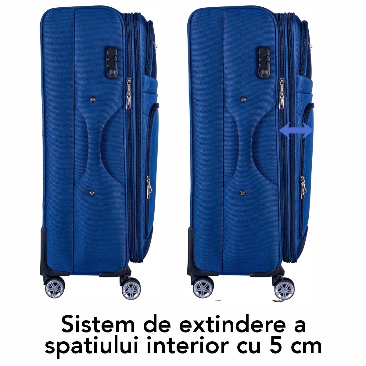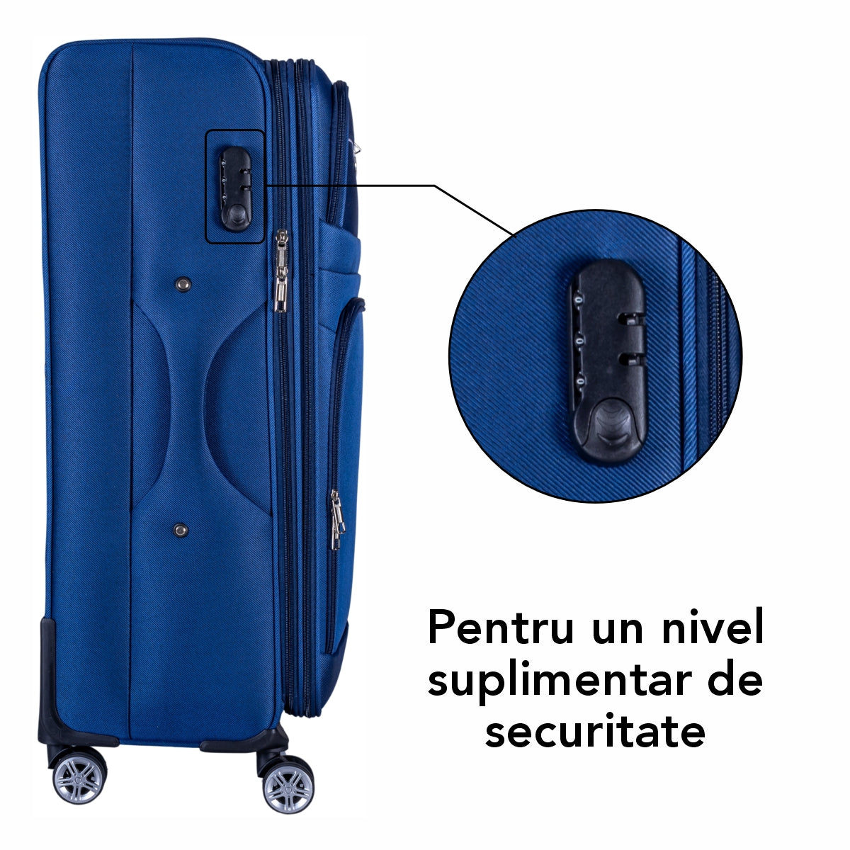 Troler voiaj Mare, Naimeed D6003, 4 roti duble 360 grade, material textil, inchidere cifru, Albastru, 46x27x78cm