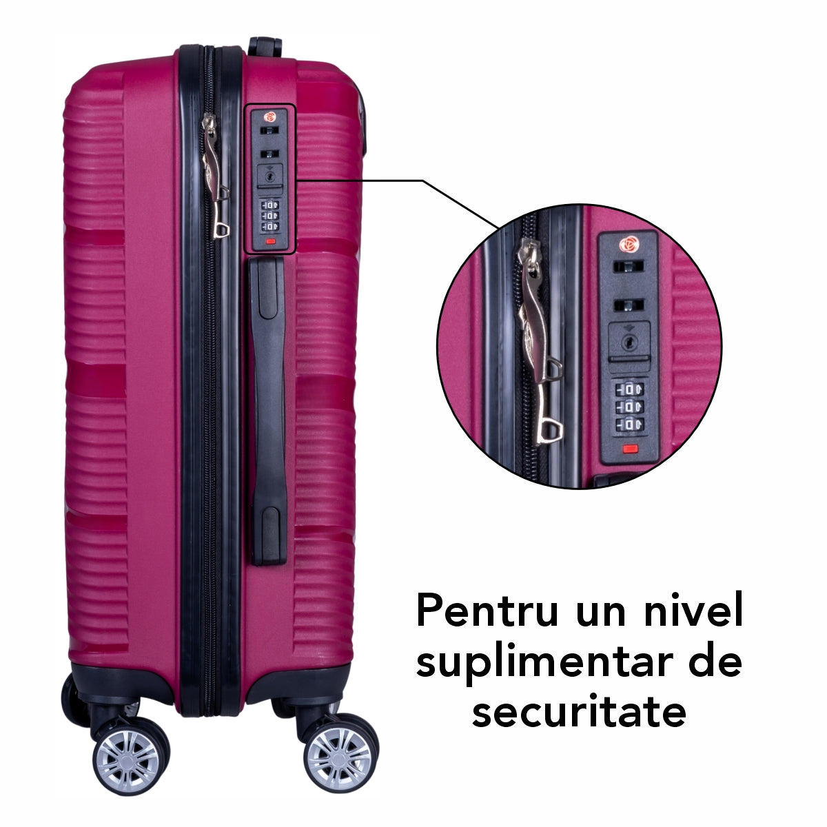 Troler voiaj Mare, Naimeed D6014, 4 roti duble 360 grade, PP, inchidere cifru, Visiniu, 46x25x64cm