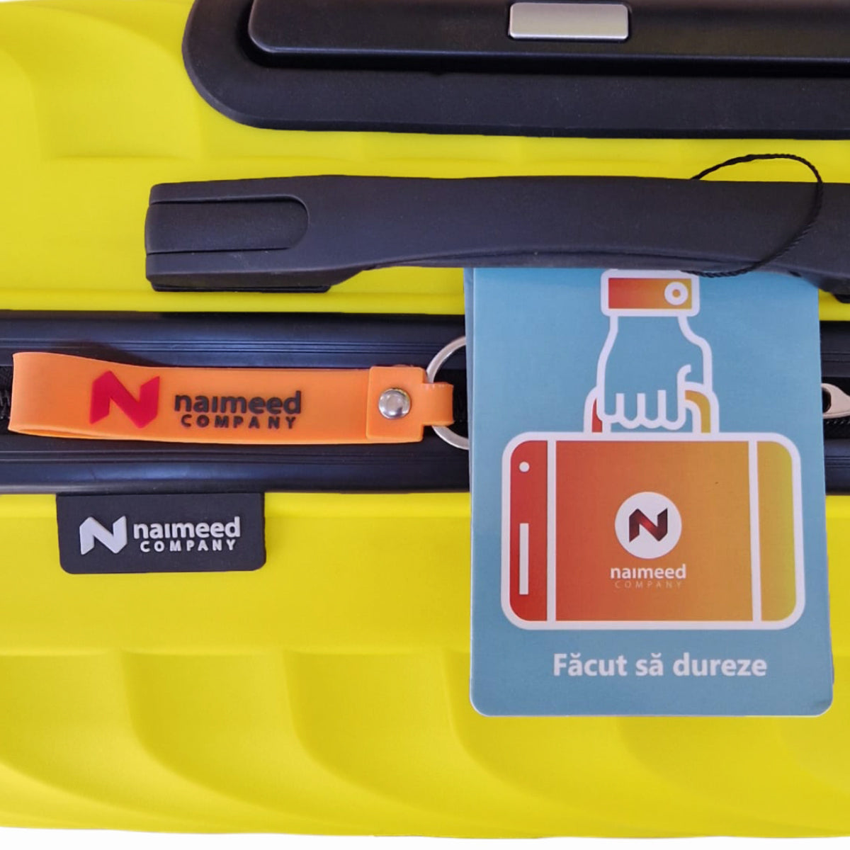 Troler voiaj Mare, Naimeed D6024, 4 roti duble 360 grade, PP, inchidere cifru, Galben, 49x26x70cm