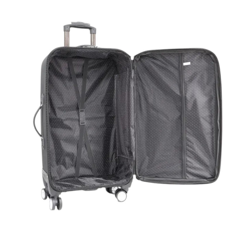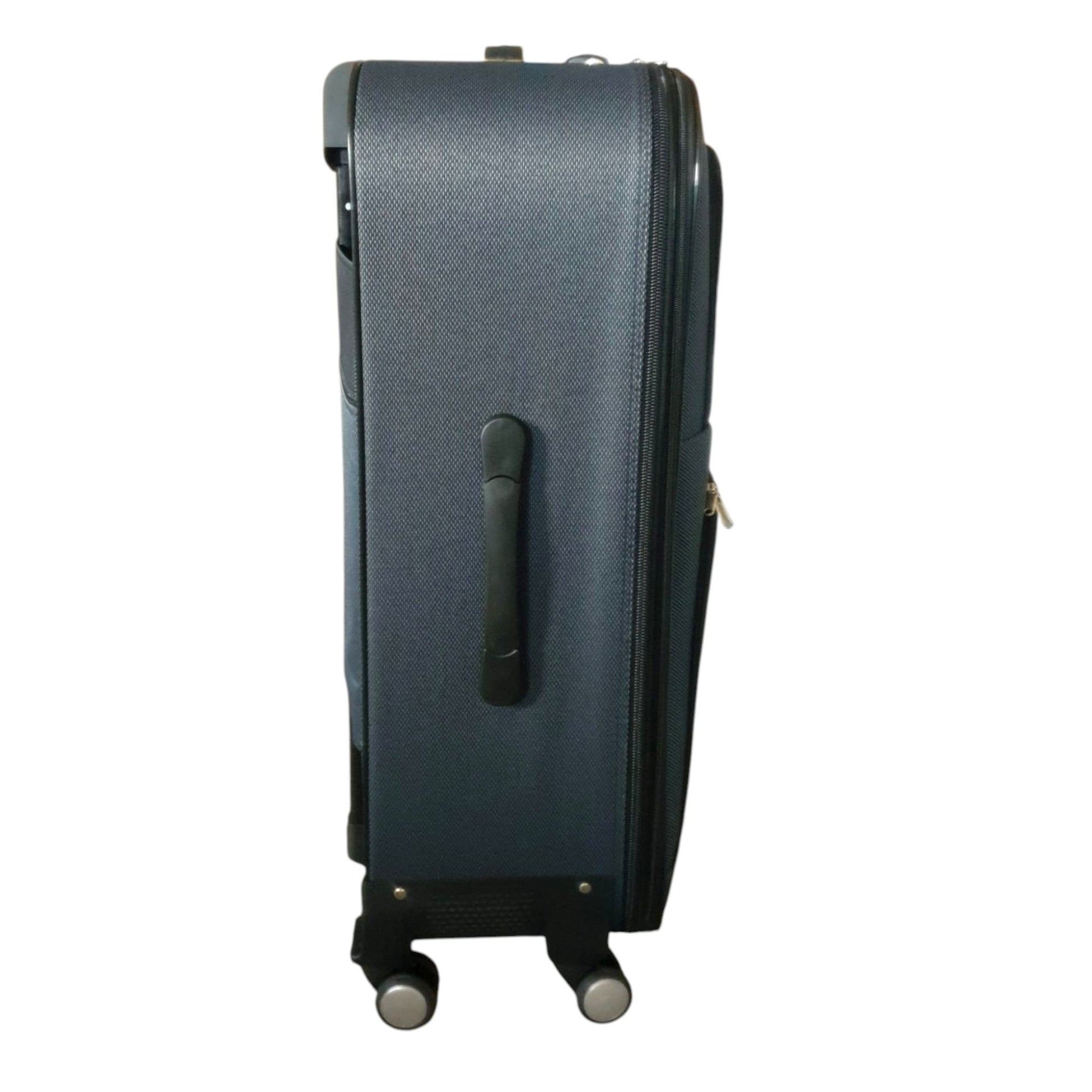 Troler voiaj, Mare, Naimeed D7179, 4 roti duble 360 grade, material textil, inchidere cifru, Gri, 45x28x75cm