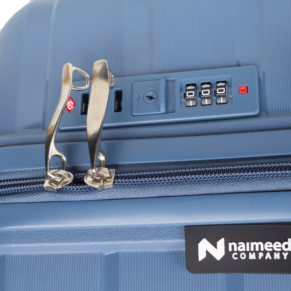 Troler voiaj Mediu M, StowAway, Naimeed D5963, 4 roti duble 360 grade detasabile , PP, inchidere cifru, Albastru, 39x22x51cm