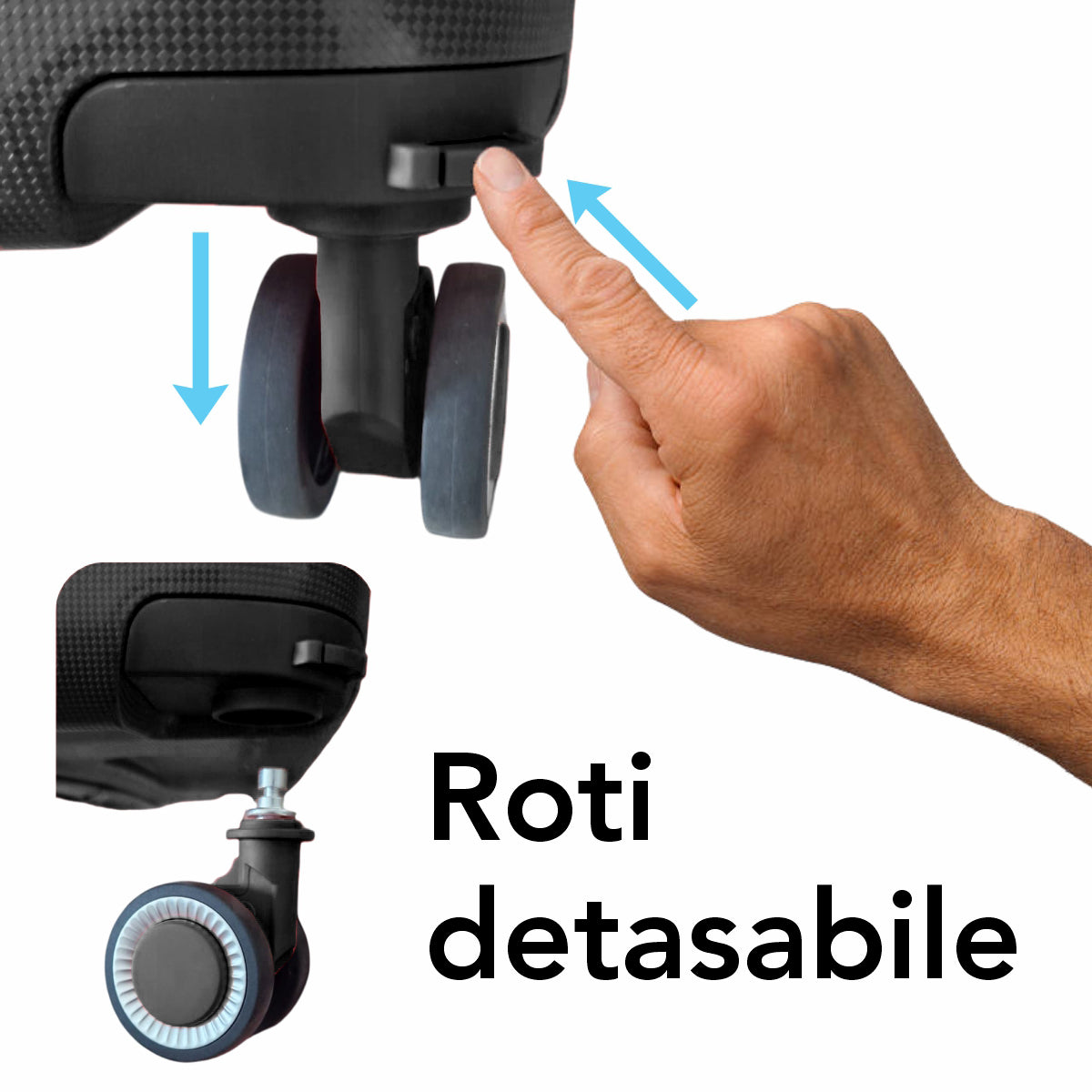 Troler voiaj Mediu M, StowAway, Naimeed D5966, 4 roti duble 360 grade detasabile , PP, inchidere cifru, Negru, 39x22x51cm