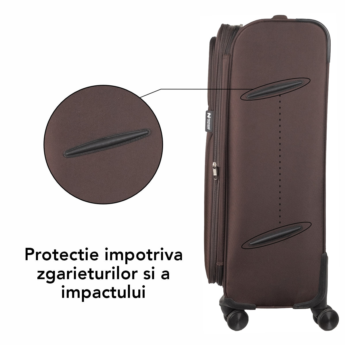 Troler voiaj Mediu, Naimeed D5973, 4 roti duble 360 grade, material textil, inchidere cifru, Maro, 41x27x62cm