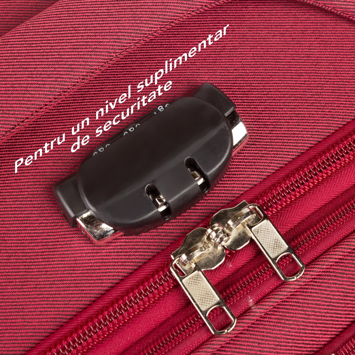 Troler voiaj Mediu, Naimeed D5980, 4 roti, material textil, inchidere cifru, Rosu, 40x28x63cm
