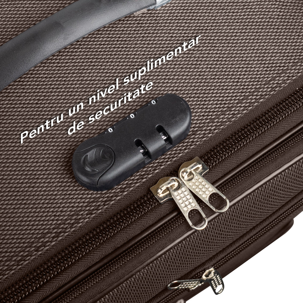 Troler voiaj Mediu, Naimeed D5995, 4 roti, material textil, inchidere cifru, Maro, 43x27x63cm