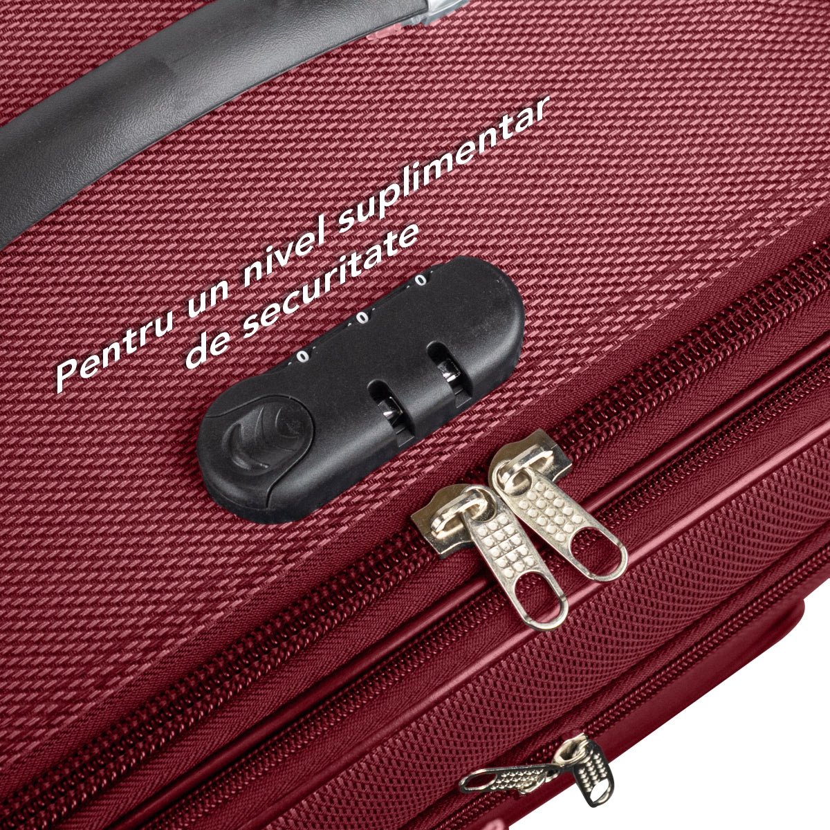 Troler voiaj Mediu, Naimeed D5996, 4 roti, material textil, inchidere cifru, Rosu, 43x27x63cm
