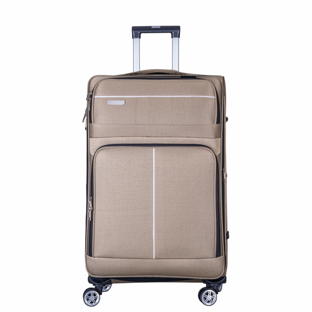 Troler voiaj Mediu, Naimeed D6001, 4 roti duble 360 grade, material textil, inchidere cifru, Crem, 41x23x68cm