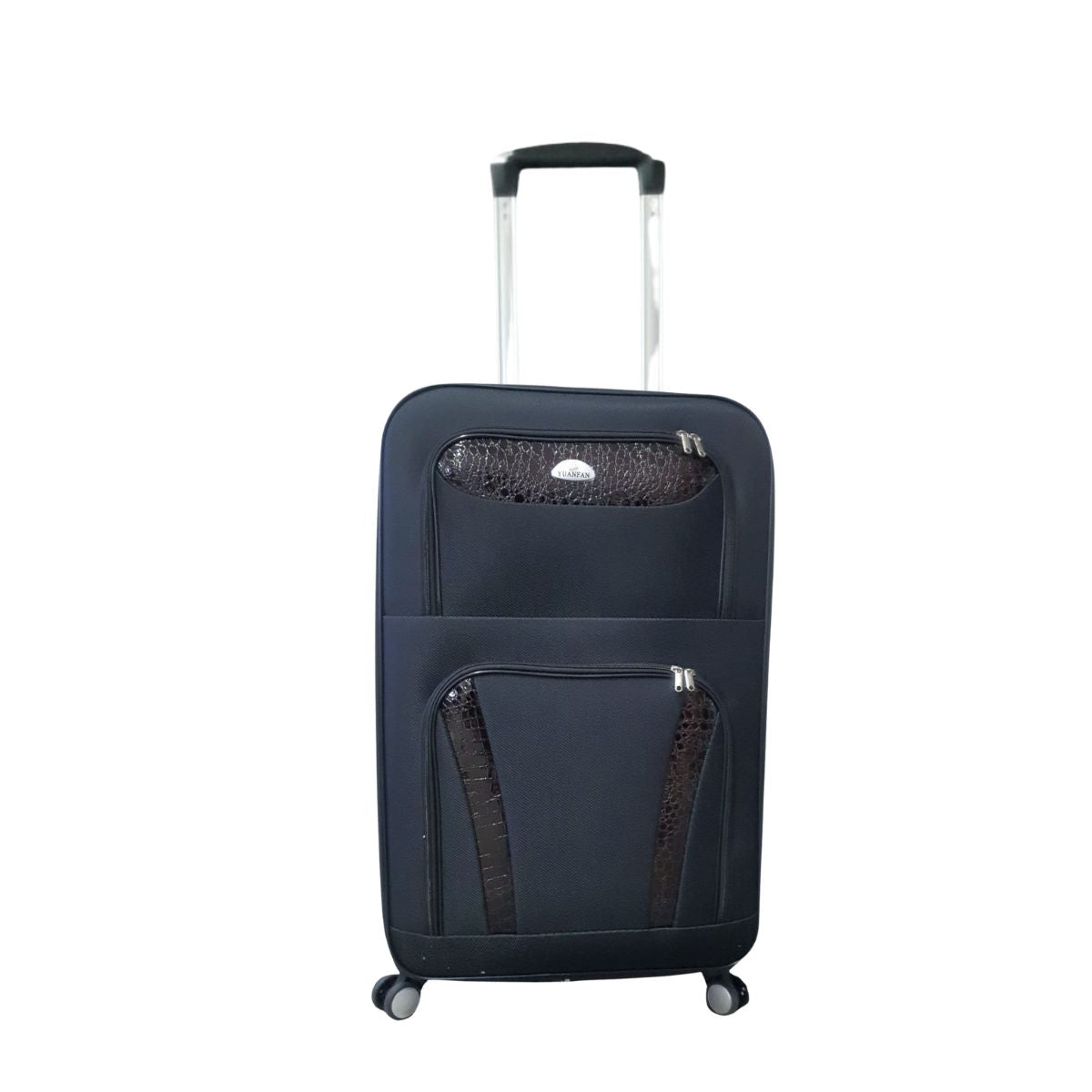 Troler voiaj, Mediu, Naimeed D7178, 4 roti duble 360 grade, material textil, inchidere cifru, Negru, 41x24x66cm