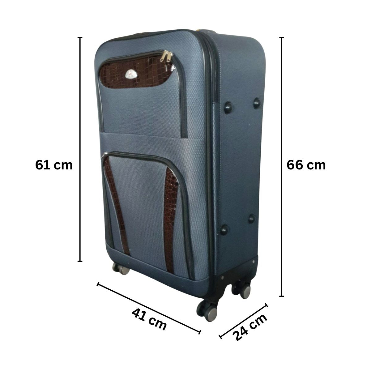 Troler voiaj, Mediu, Naimeed D7179, 4 roti duble 360 grade, material textil, inchidere cifru, Gri, 41x24x66cm