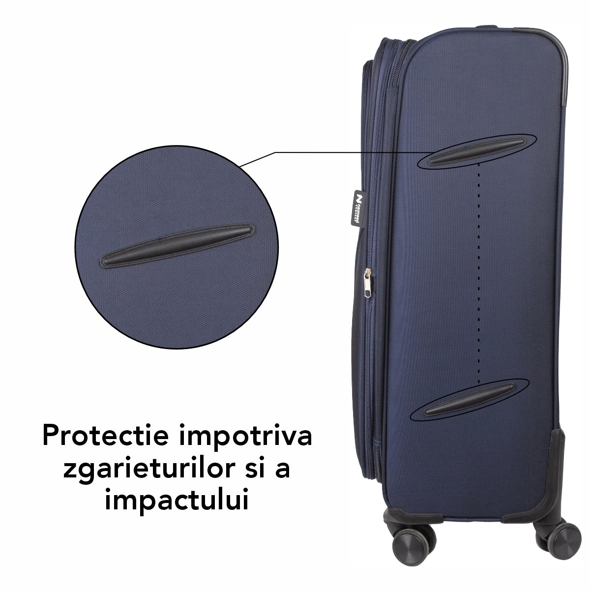 Troler voiaj Mic, Naimeed D5972, 4 roti duble 360 grade, material textil, inchidere cifru, Albastru, 36x23x52cm
