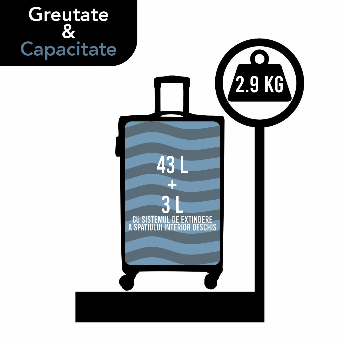 Dimensiuni exterioare: 36x23x57cm (L x l x h) - incluzand rotile
