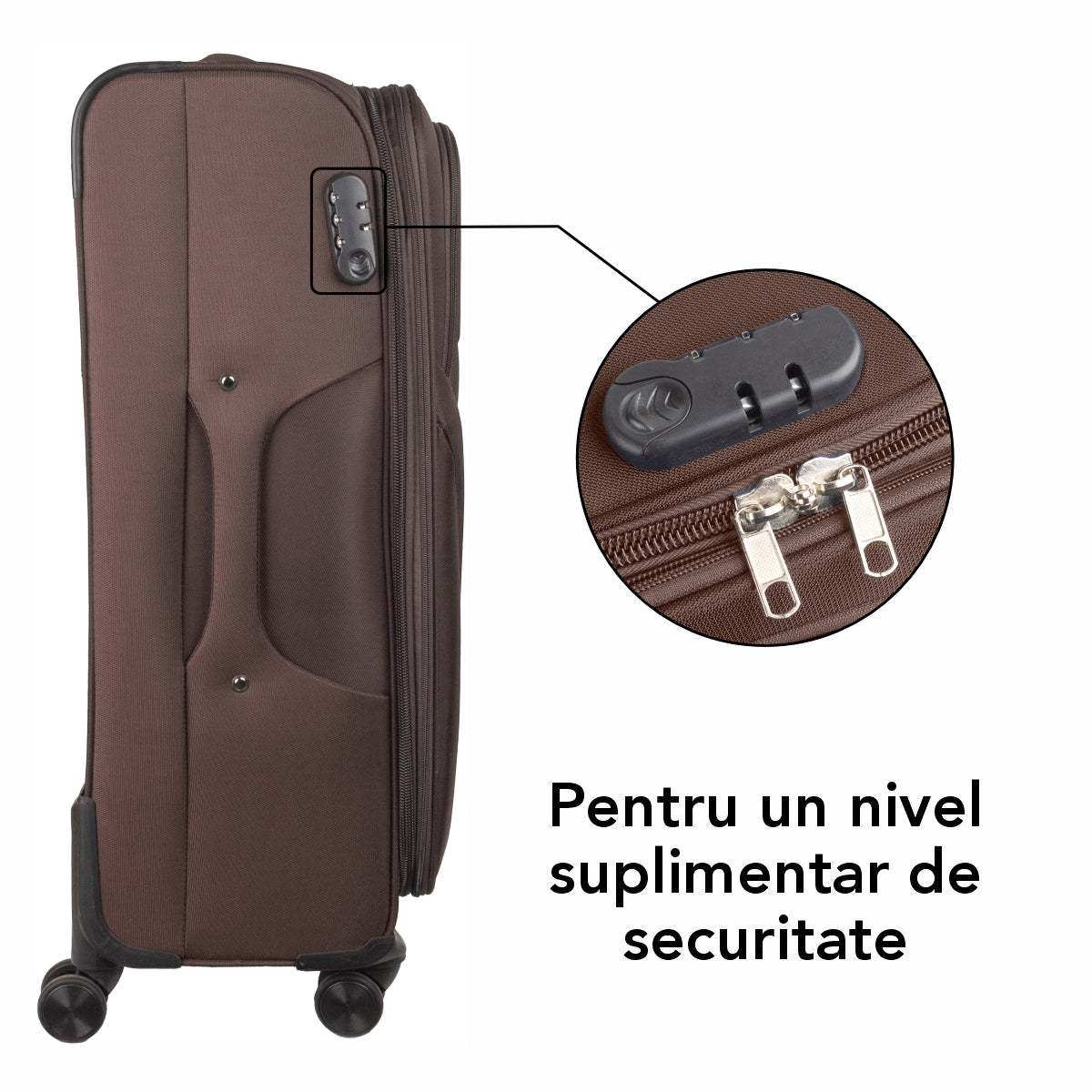 Troler voiaj Mic, Naimeed D5973, 4 roti duble 360 grade, material textil, inchidere cifru, Maro, 36x23x52cm