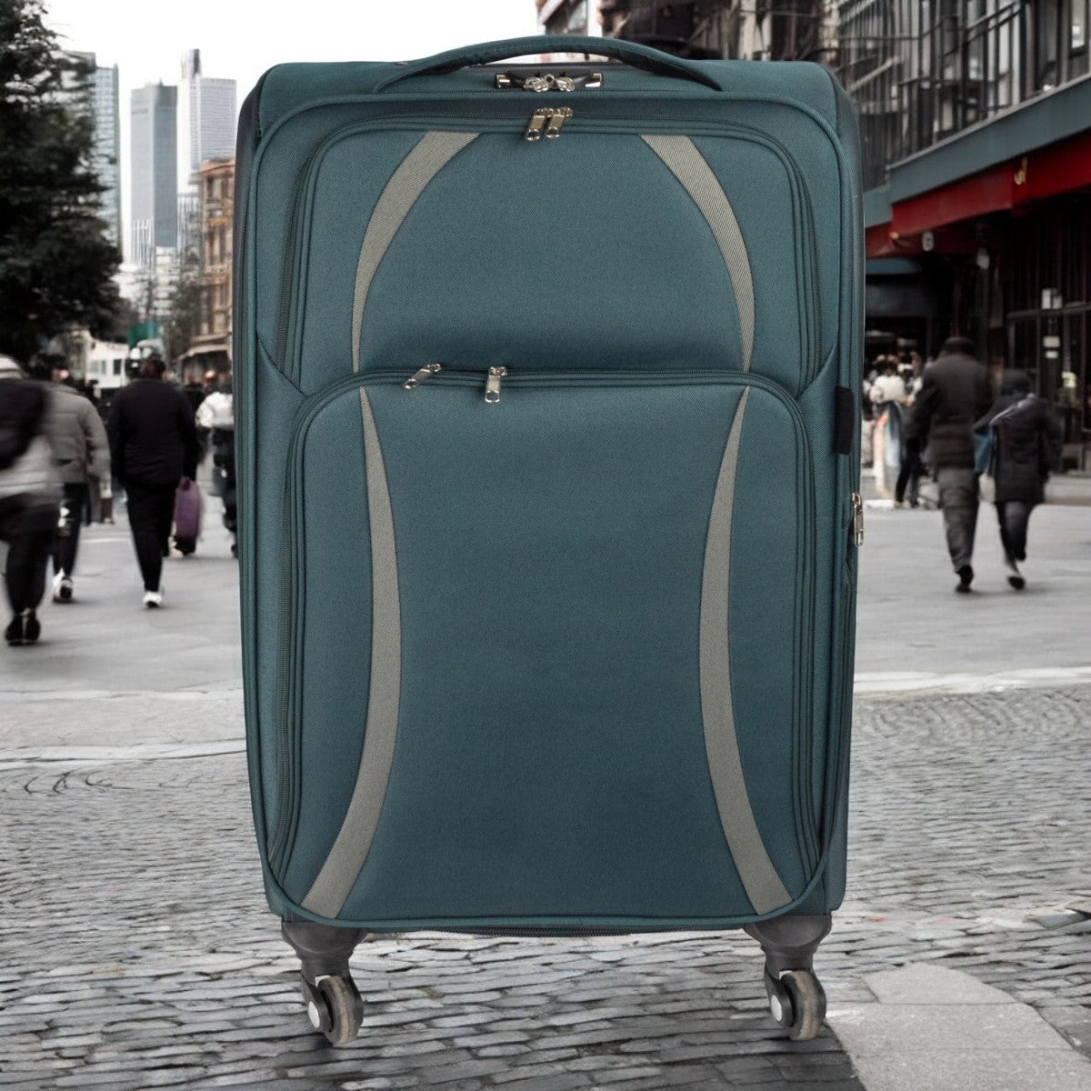Troler voiaj Mic, Naimeed D5981, 4 roti, material textil, inchidere cifru, Verde, 35.5x26x52cm
