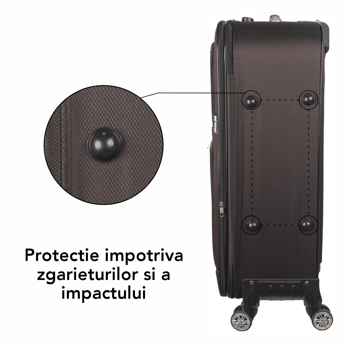 Troler voiaj Mic, Naimeed D5995, 4 roti, material textil, inchidere cifru, Maro, 37x24x55cm