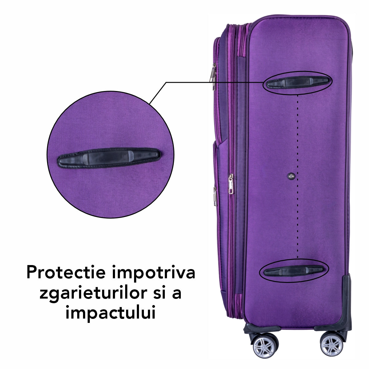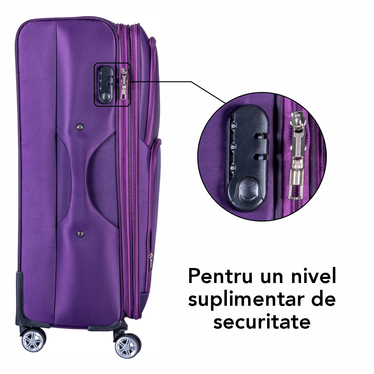 Troler voiaj Mic, Naimeed D5997, 4 roti duble 360 grade, material textil, inchidere cifru, Mov, 35x21x58cm