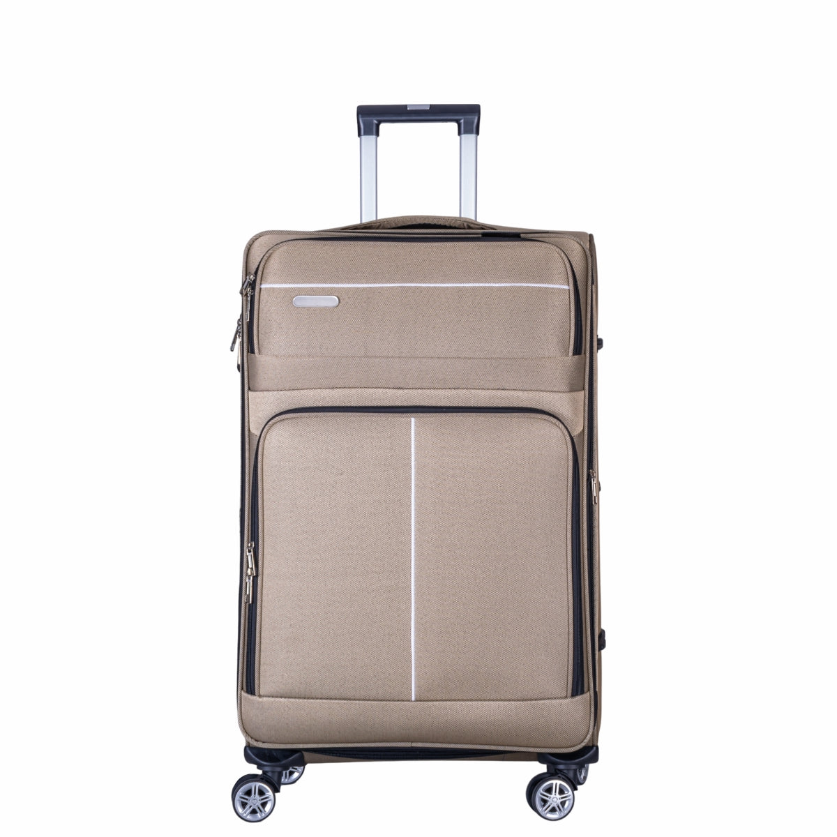 Troler voiaj Mic, Naimeed D6001, 4 roti duble 360 grade, material textil, inchidere cifru, Crem, 35x21x58cm