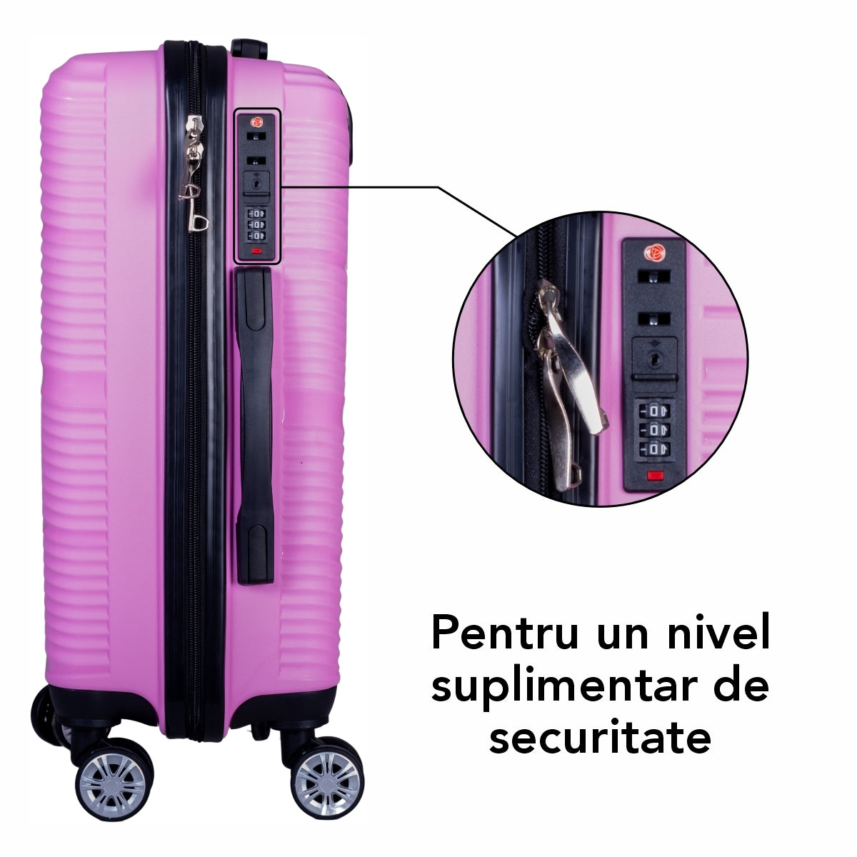 Troler voiaj Mic, Naimeed D6010, 4 roti duble 360 grade, PP, inchidere cifru, Roz, 33x20.5x45cm
