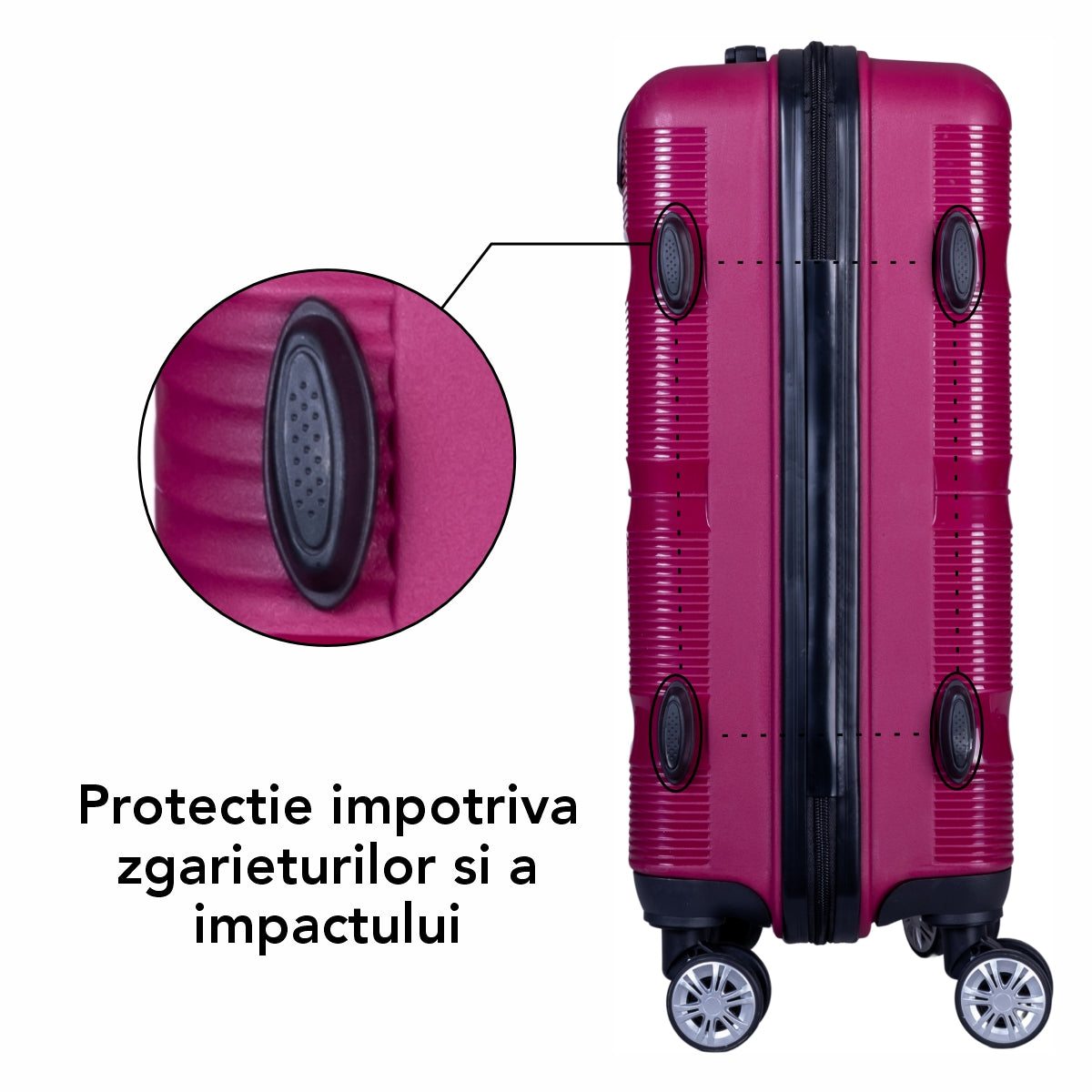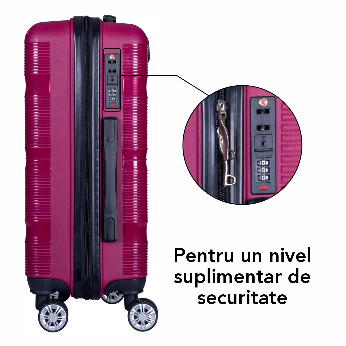 Troler voiaj Mic, Naimeed D6015, 4 roti duble 360 grade, PP, inchidere cifru, Visiniu, 35x21x47cm