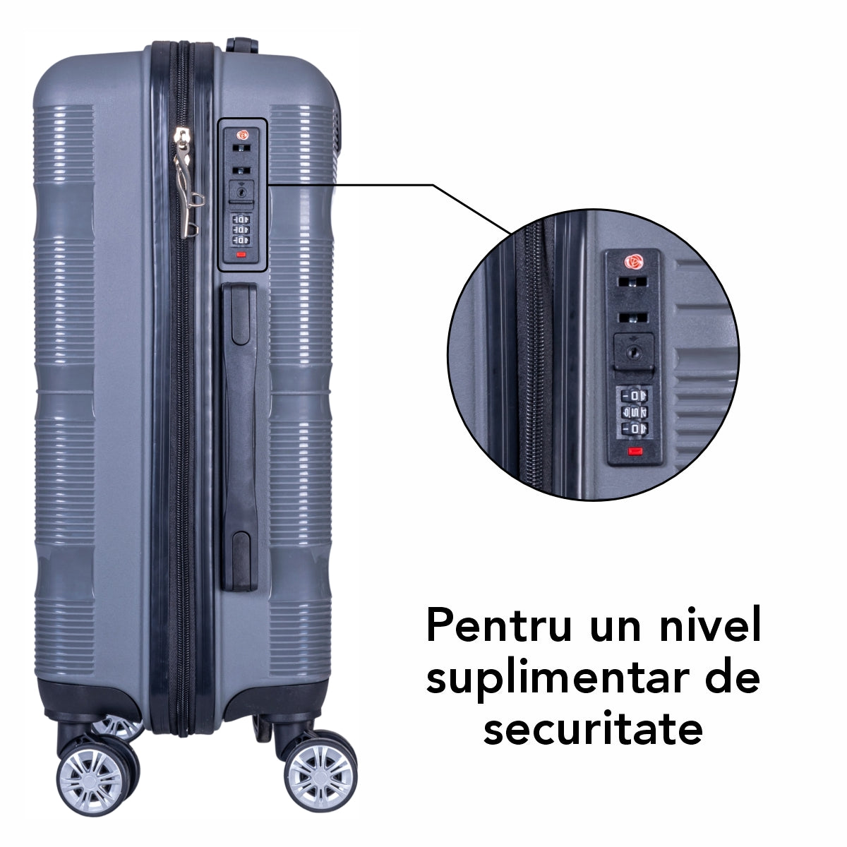 Troler voiaj Mic, Naimeed D6019, 4 roti duble 360 grade, PP, inchidere cifru, Gri, 35x21x47cm