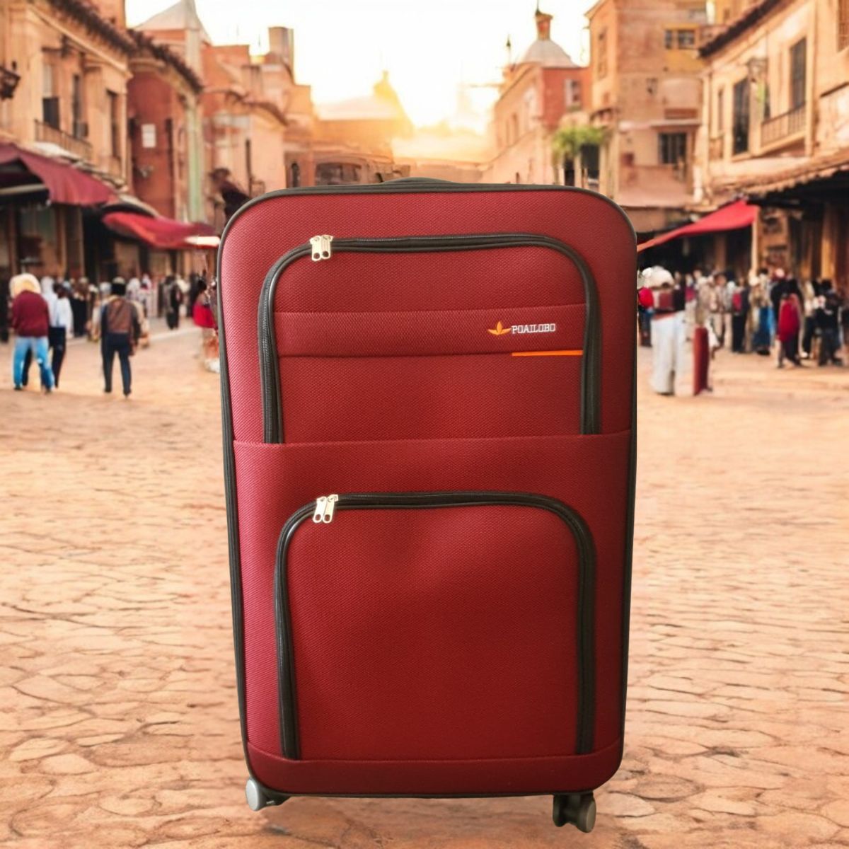 Troler voiaj, Mic, Naimeed D7175, 4 roti duble 360 grade, material textil, inchidere cifru, Rosu, 36x22x55cm